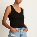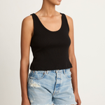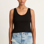 AMO's crop Rib Tank is cut so to easily wear a bra underneath. Pairs perfectly with high-rise denim. Made in Los Angeles.