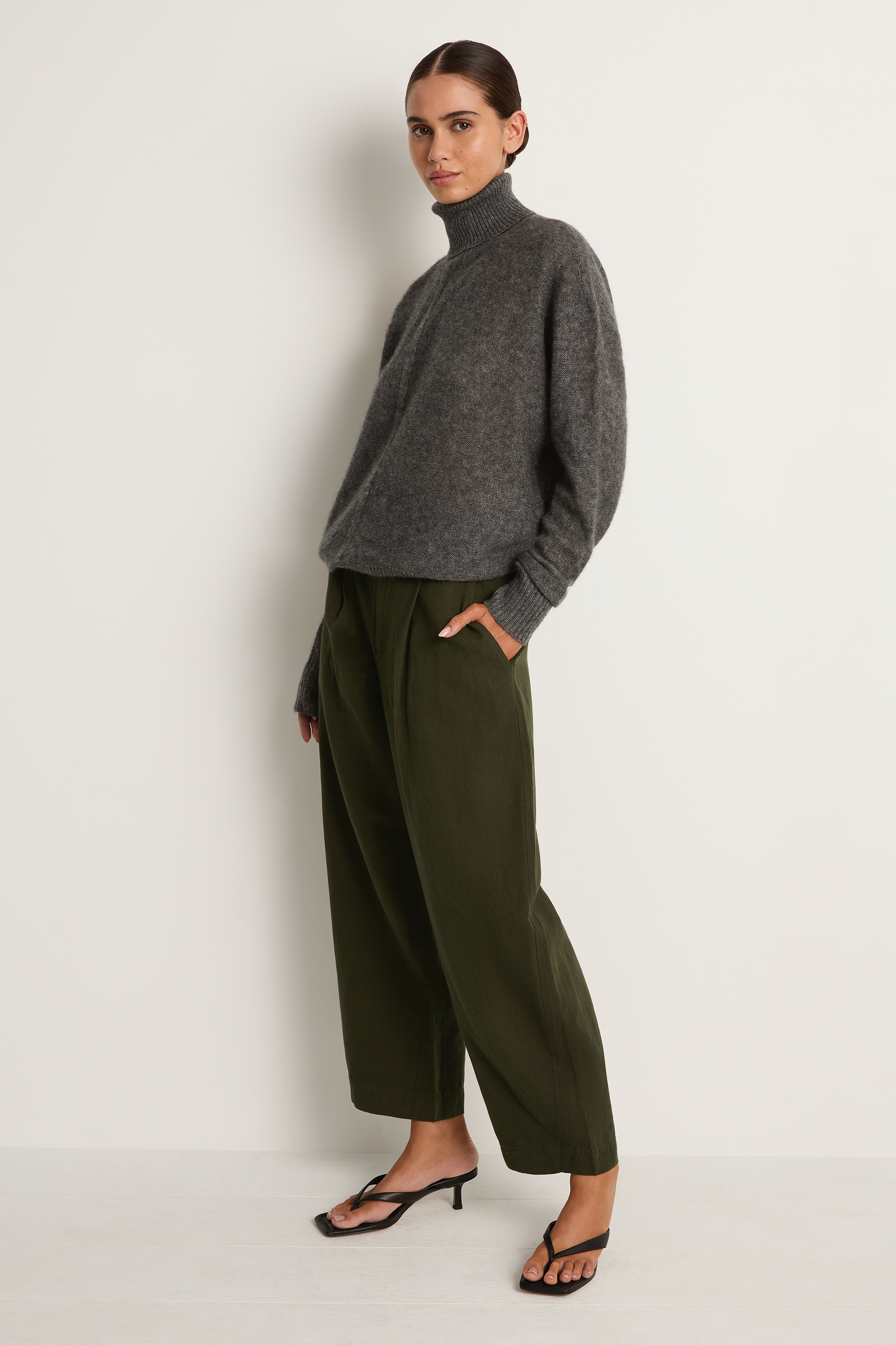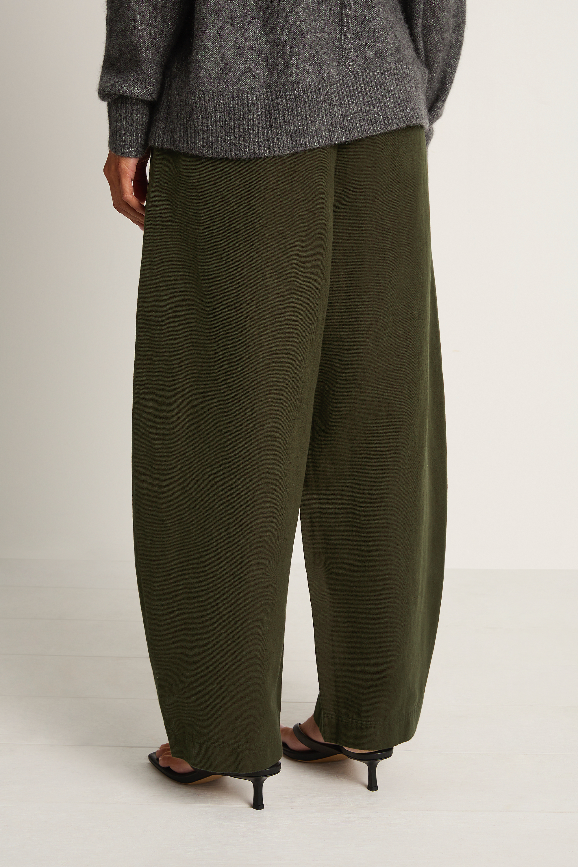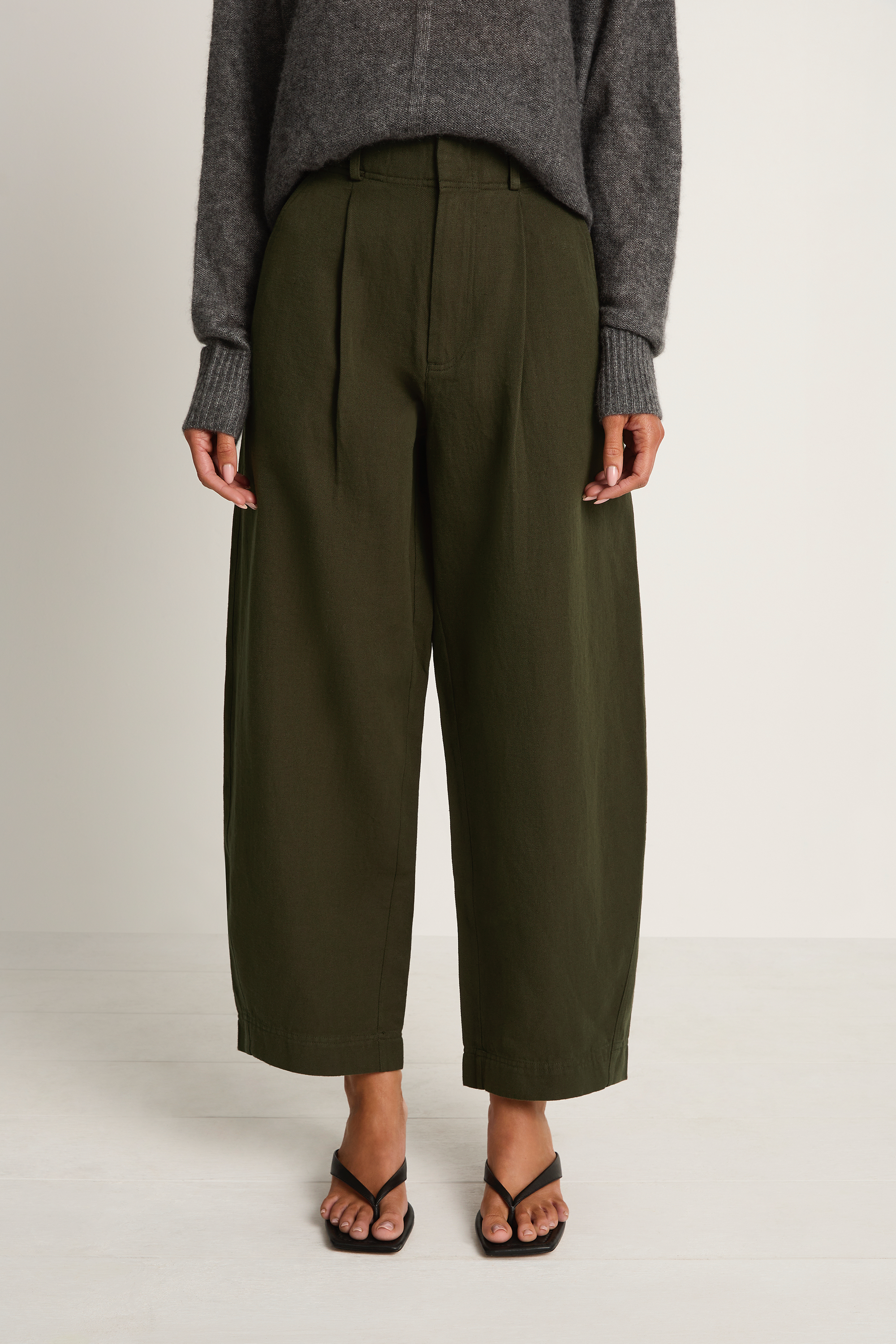 Meet the Apiece Apart Bari Crop Trouser, an easy everyday favorite. High waist, cropped barrel leg, front pleats, and deep pockets in a soft cotton-linen that breathes. Quiet structure with an easy drape, it pairs with tees, knits, or a blazer and works year round.