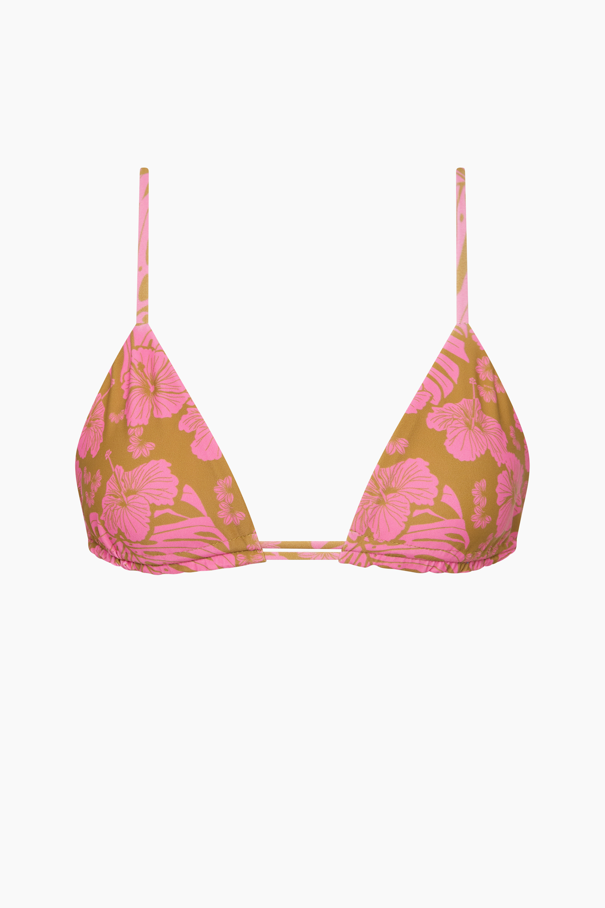 A triangle bikini top featuring double straps under the bust and fixed shoulder straps for added support. With adjustable sliding cups, this top offers a customizable fit and a flattering silhouette.