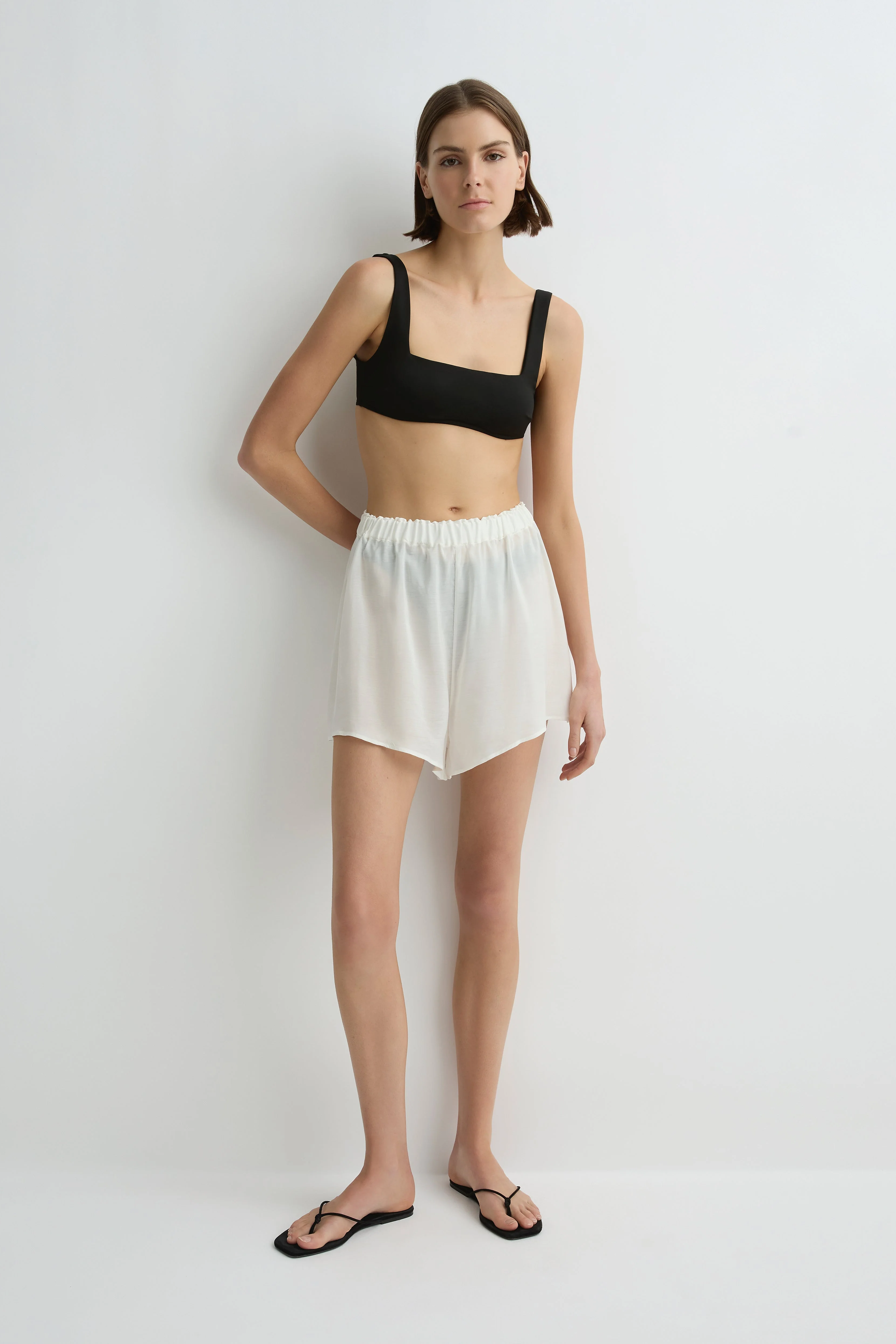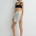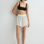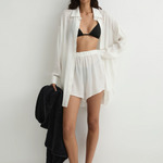 The Cremona Short in white is a lightweight summer essential, crafted from soft, sheer European rayon voile. Designed with an elasticated waistband and a relaxed fit through the leg, it offers effortless comfort for warm days. Wear it over swimwear or style it with the matching Cremona Oversized Shirt for an easy, versatile resort look.