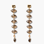 18k gold plated sterling silver earrings, anchored by bezel-set smoky quartz. Cascading smoky quartz marquise stones. Finished with a 2 3/4 inch drop.