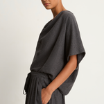 Carefully designed and crafted in Paris using sustainable organic materials. Her team then washes, air-dries, and meticulously verifies each piece in her Parisian atelier. Mélancolie is a minimalist top in cozy cotton flannel with a waterfall neckline and wide short sleeves.