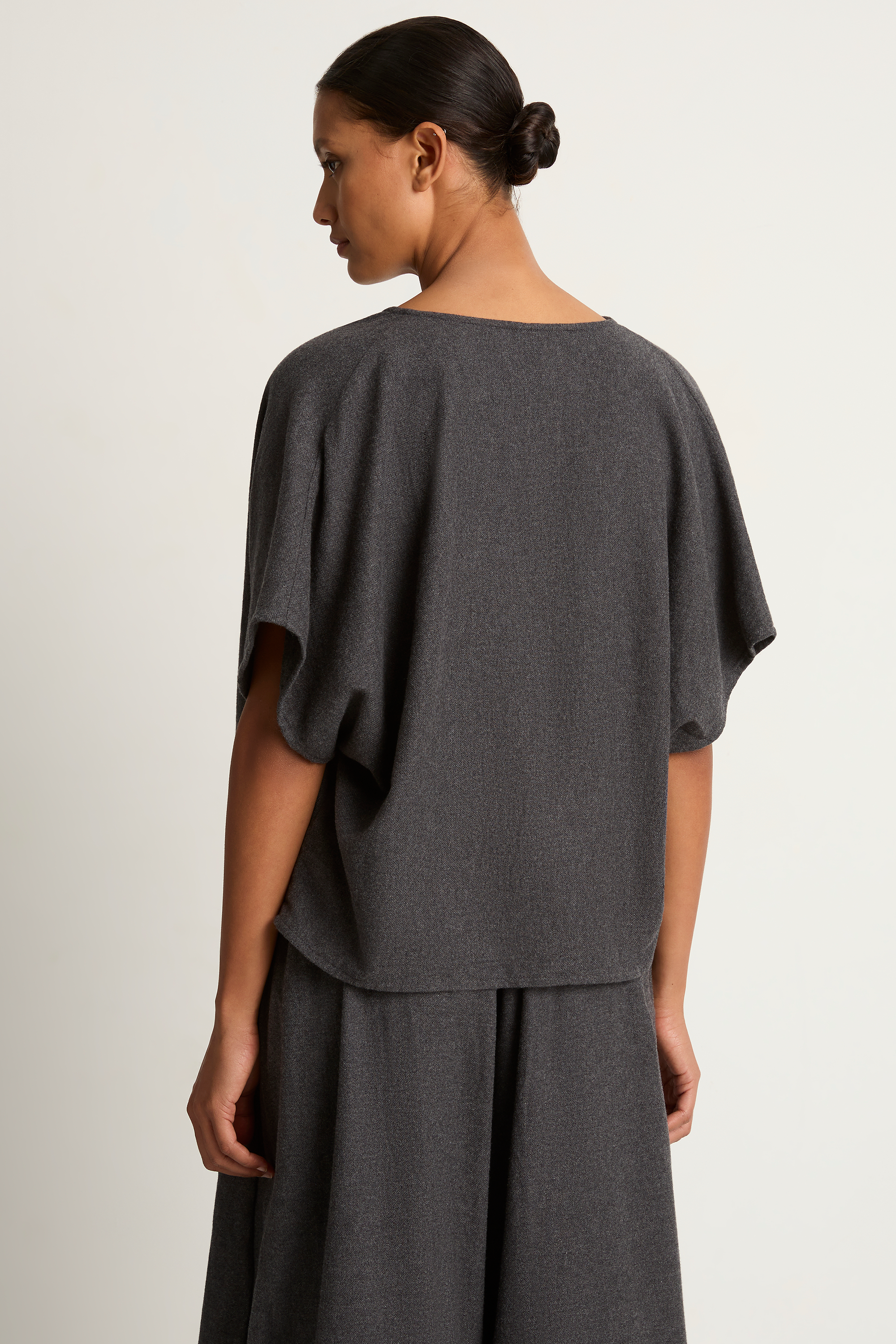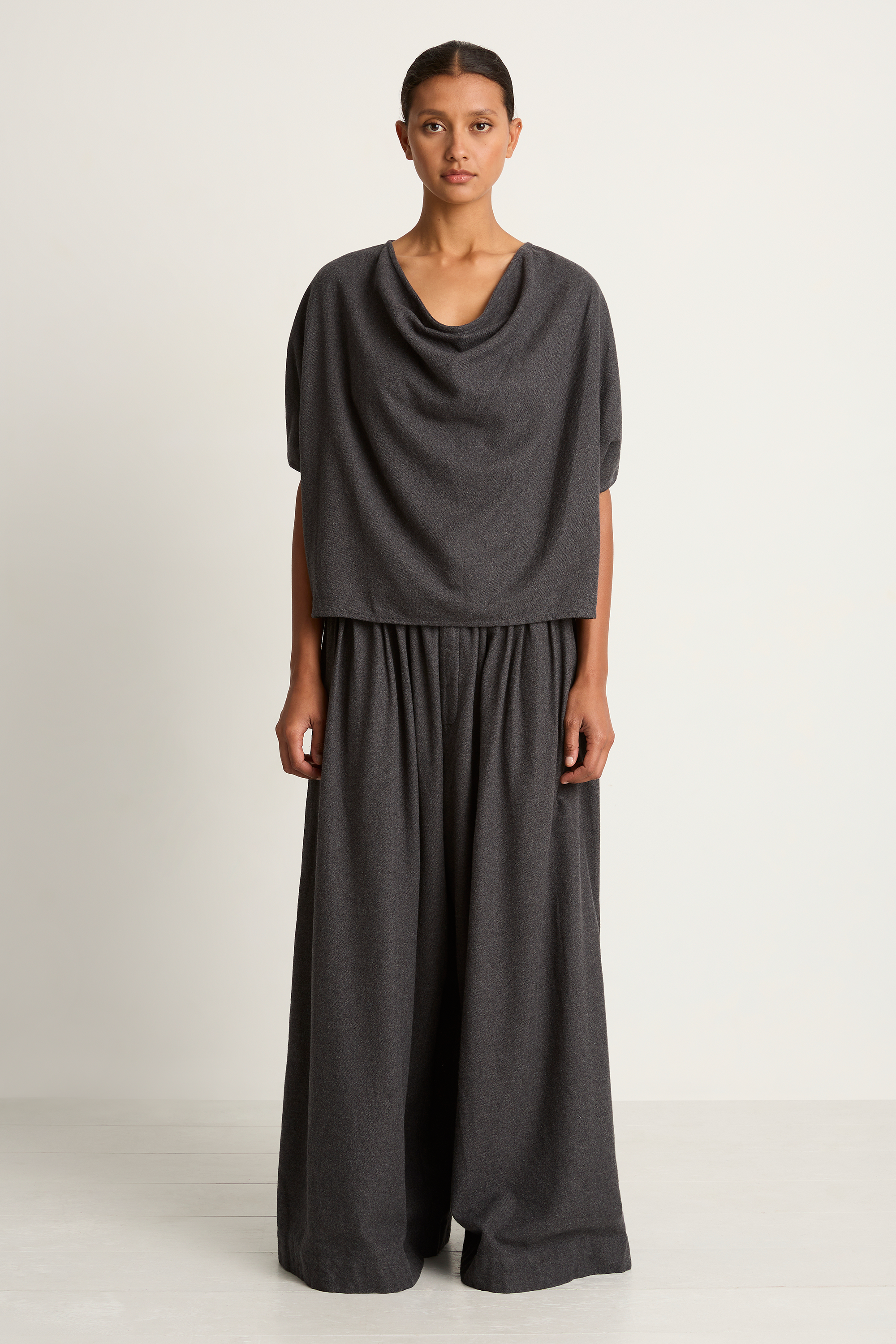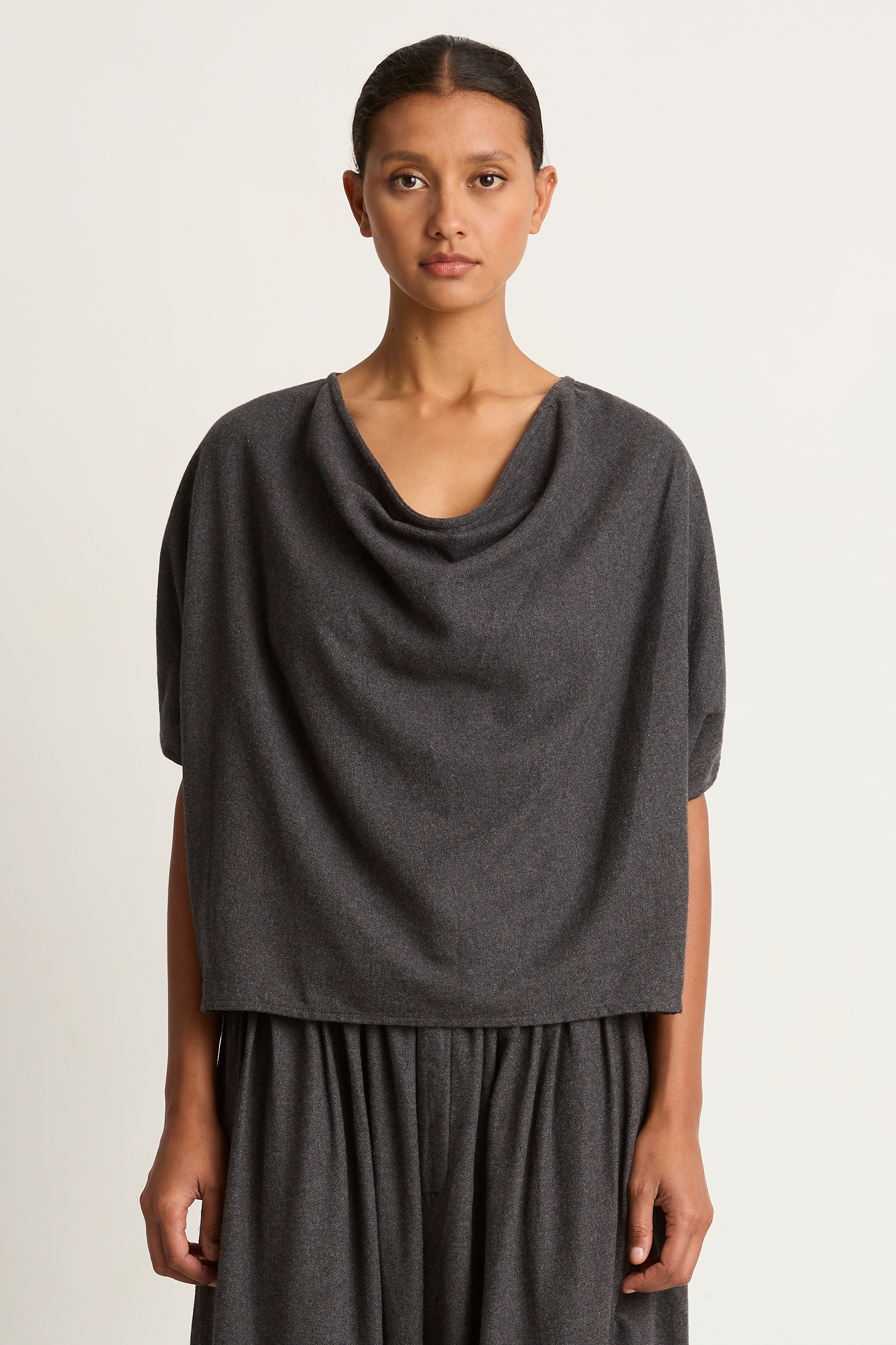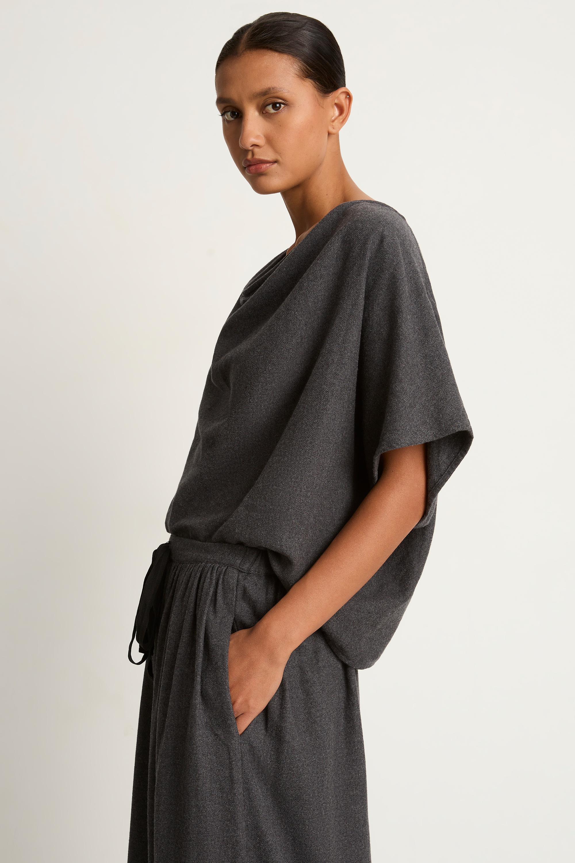 Carefully designed and crafted in Paris using sustainable organic materials. Her team then washes, air-dries, and meticulously verifies each piece in her Parisian atelier. Mélancolie is a minimalist top in cozy cotton flannel with a waterfall neckline and wide short sleeves.