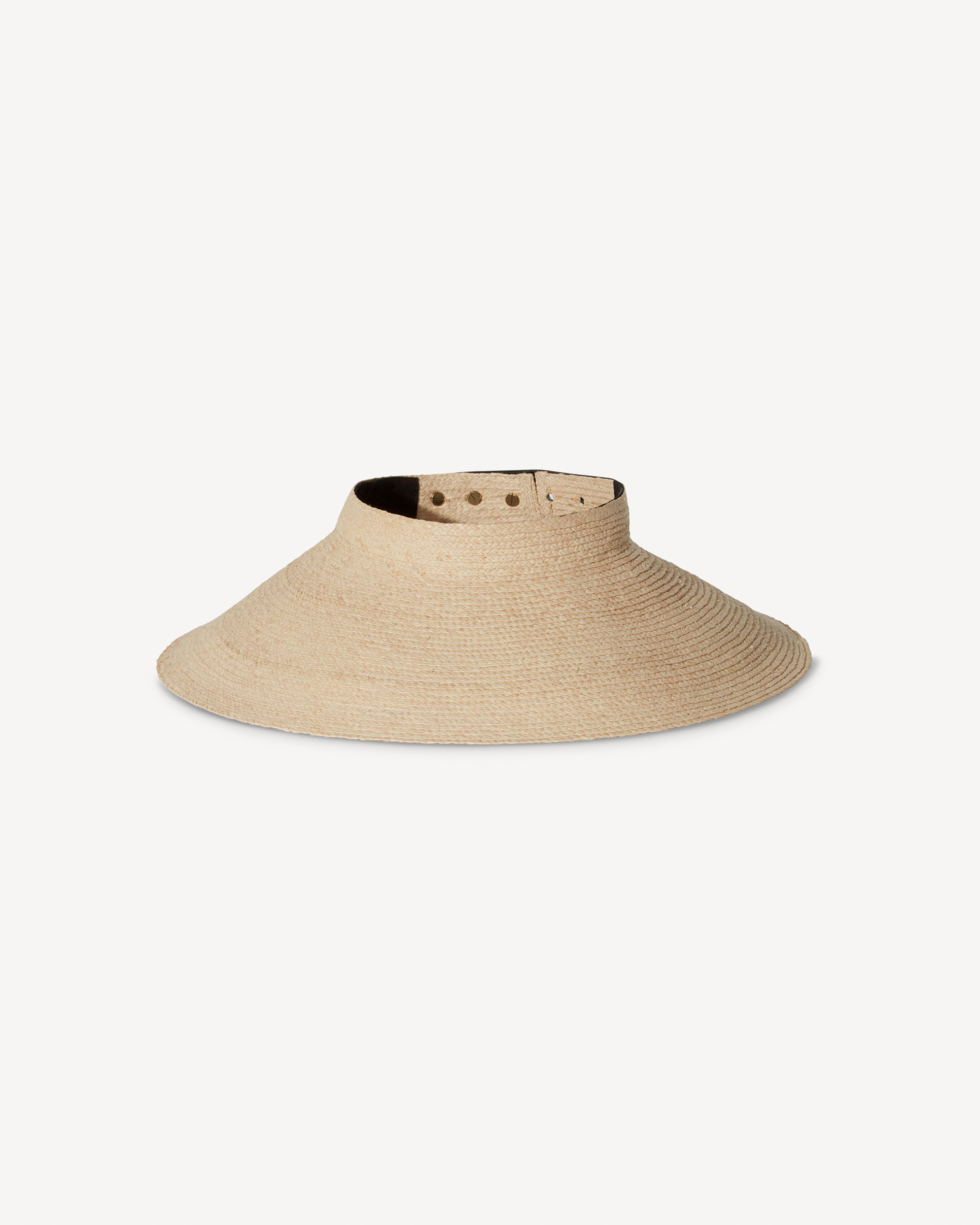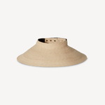 The Birdie visor is expertly crafted from raffia straw and features an adjustable fit, complemented by a regenerative leather closure. Designed for travel, this visor provides UPF 50+ protection and can be easily rolled up for effortless packing.