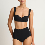 A versatile high-waisted silhouette designed to pair effortlessly with any of Marysia’s scalloped tops. Reversible with black on one side and indigo on the other. Always a best-seller.