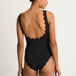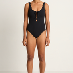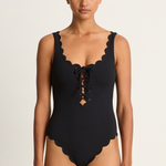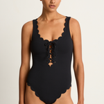 Marysia classic maillot with adjustable lace up tie front and scalloped edges. Quick drying fabric.