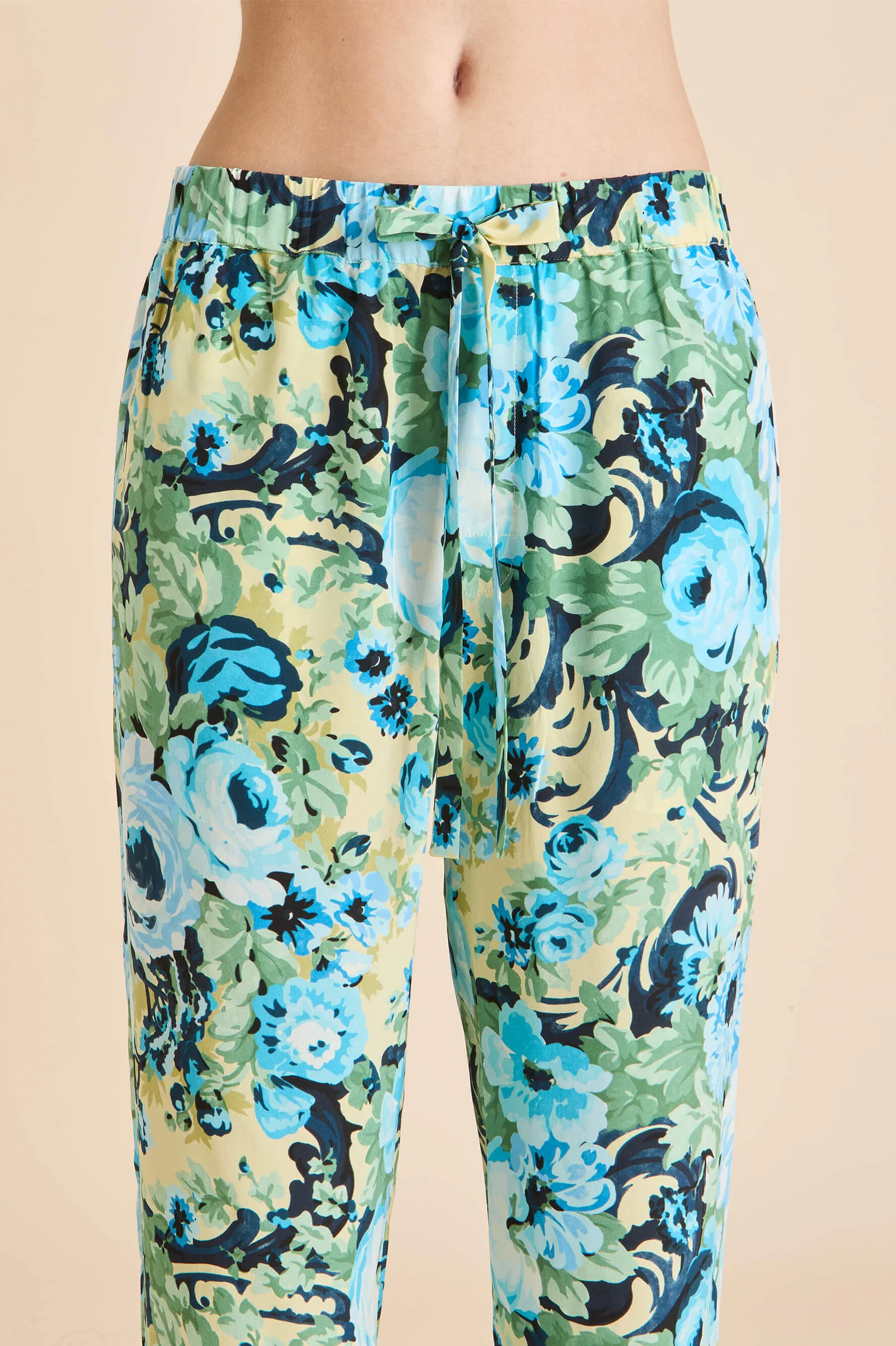 Olivia Von Halle Casablanca Silk Pajamas - Jardin Blue Floral