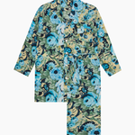 Soft blue silk Crêpe de Chine scattered with blooming Jardin florals, a print inspired by the lush interiors Elsie de Wolfe once imagined for her Paris salons. The Casablanca pajama falls with a relaxed ease, offering polished comfort and a sense of understated elegance at home.