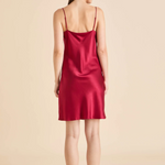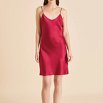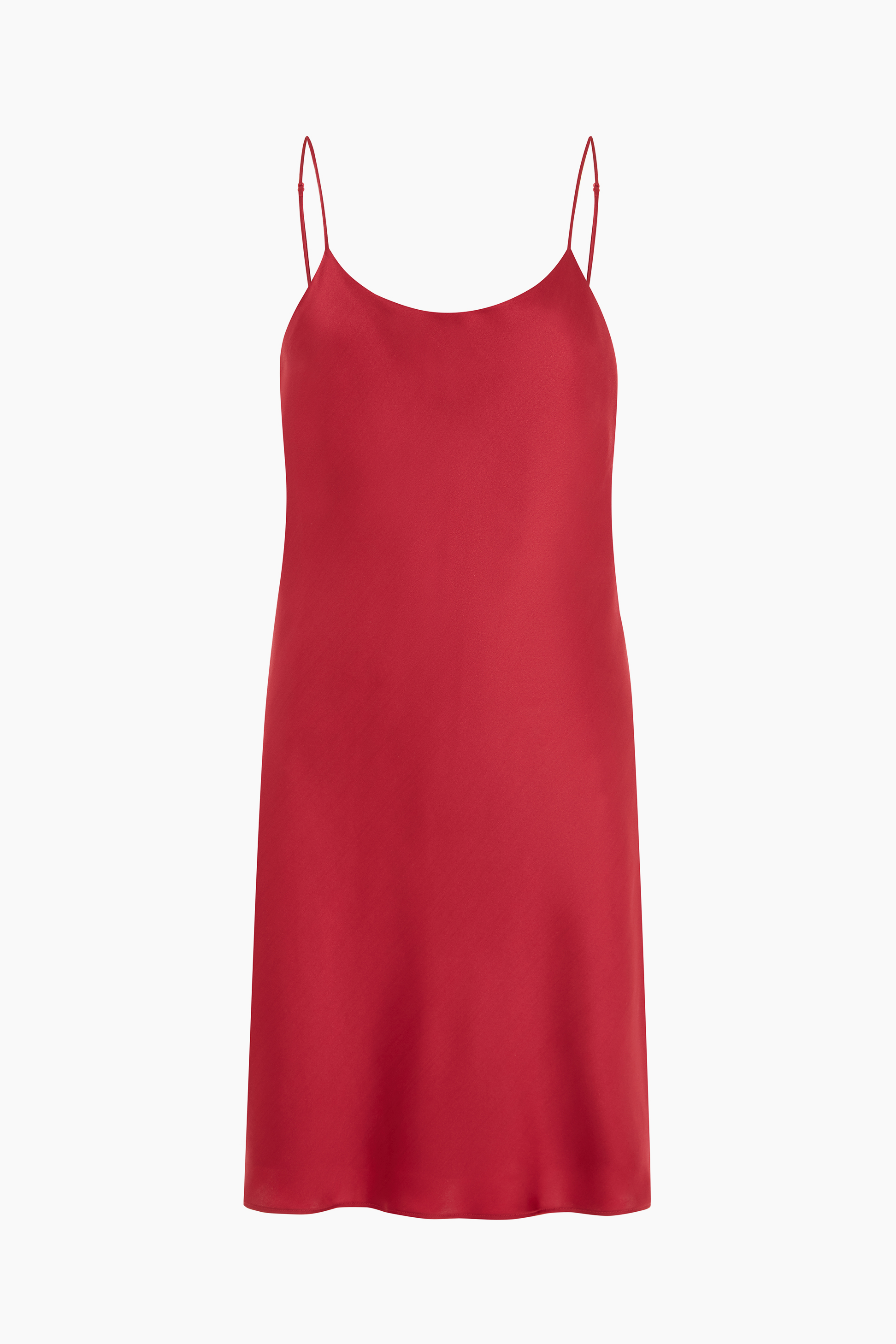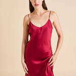 The Venus slip dress in russet red is crafted from silk satin with a soft, fluid drape. Designed for understated impact, from quiet nights in to elevated occasions.