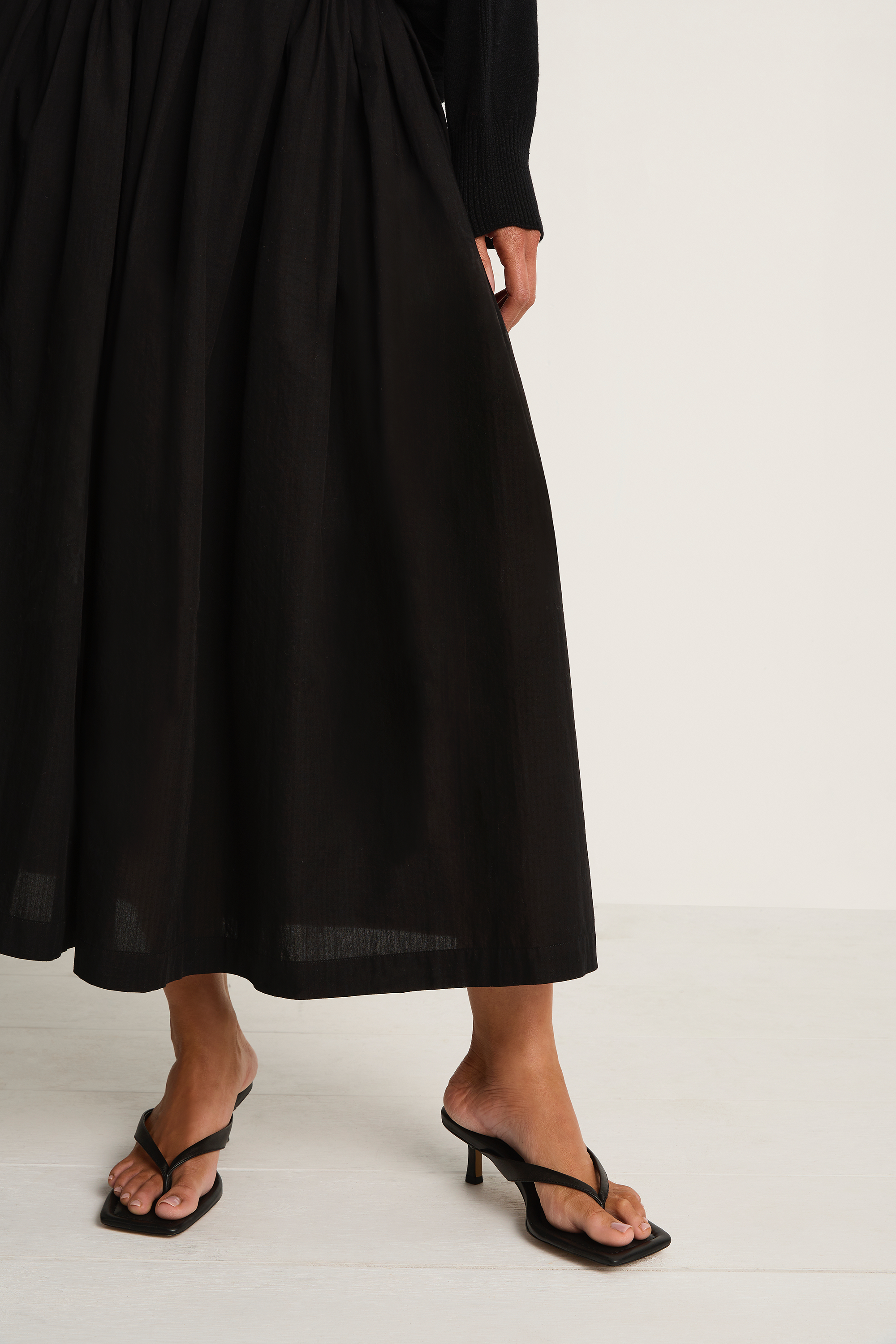 Pas De Calais Cotton Checkered Gathered Skirt - Black