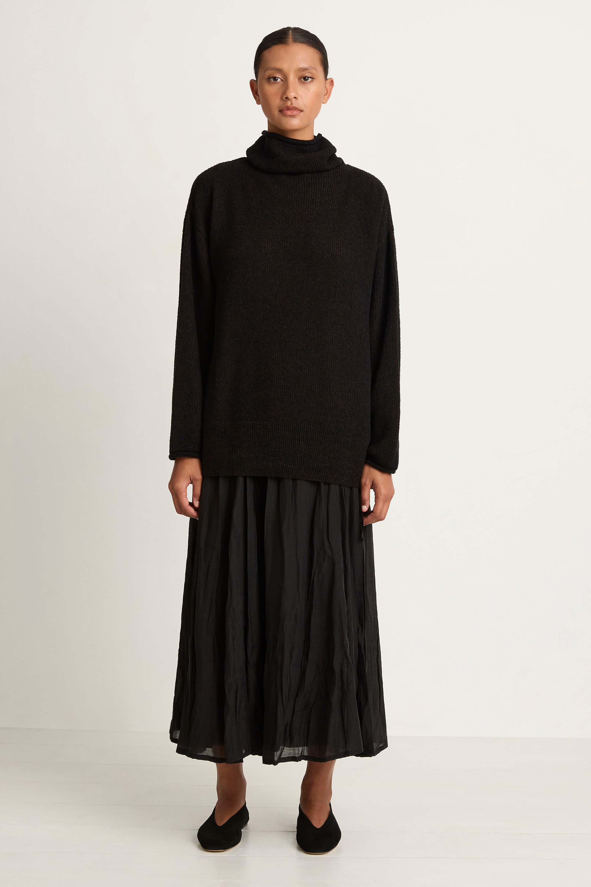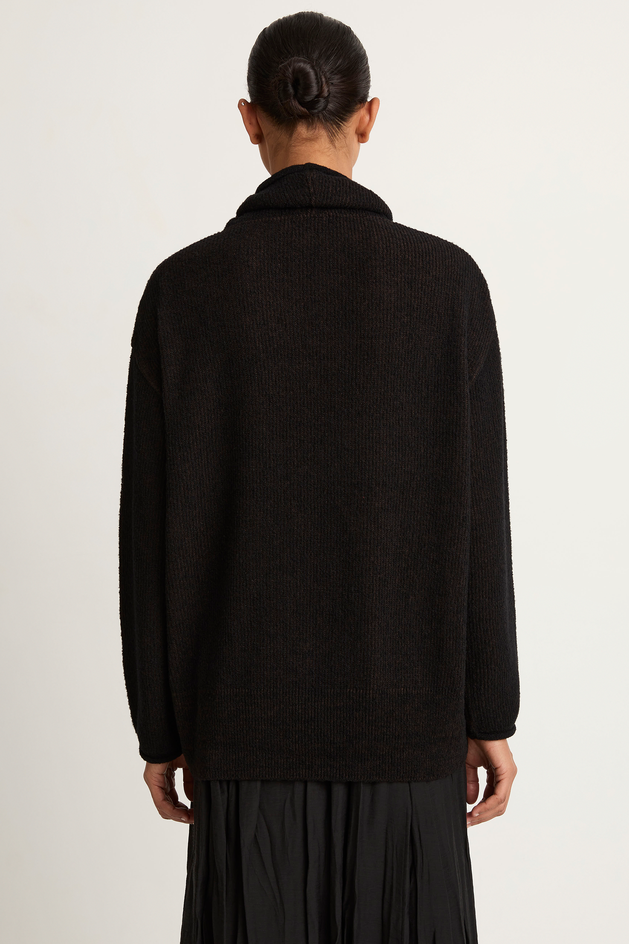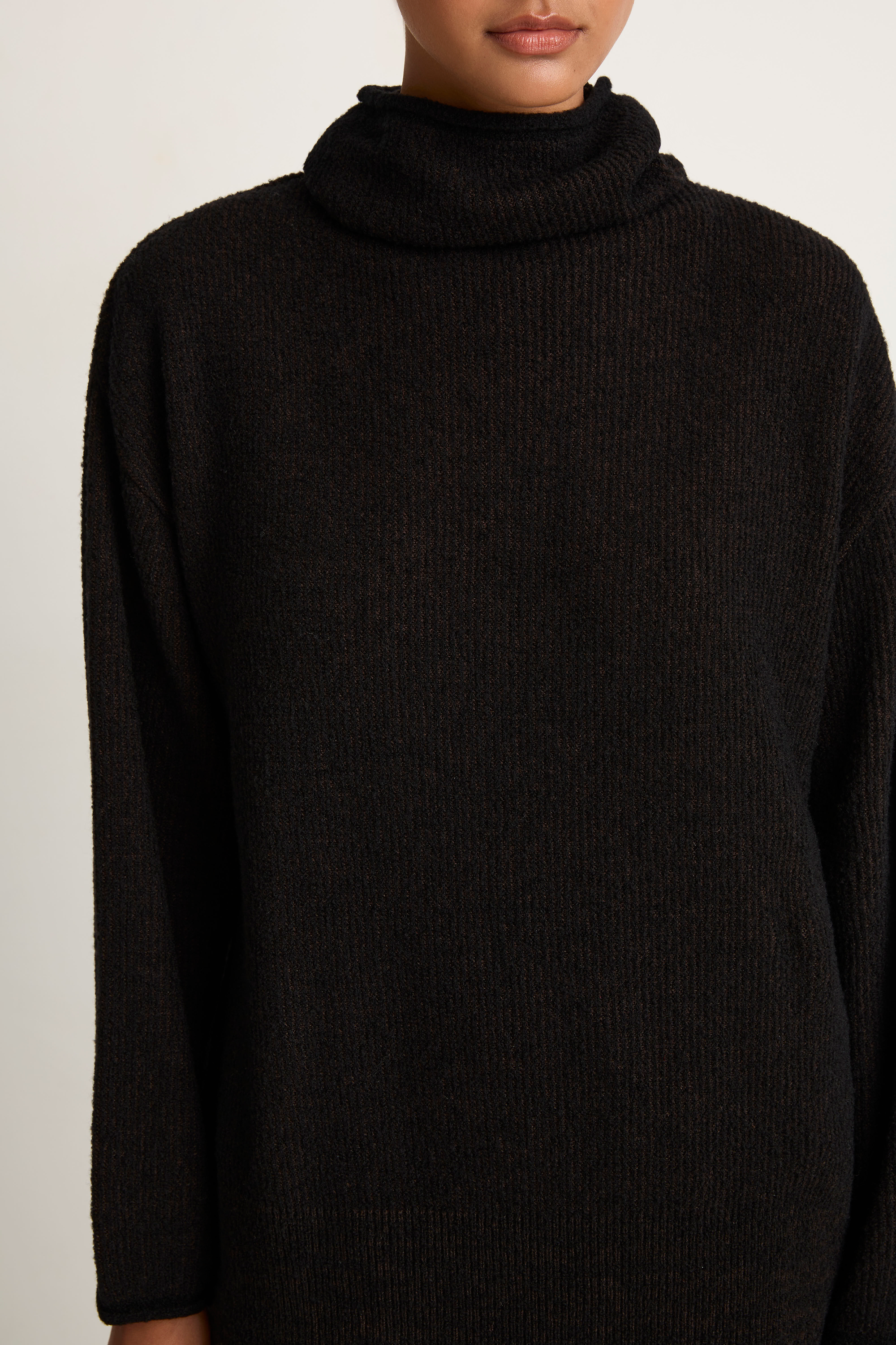 Fine Bouclé Turtleneck Knit Pullover - Black