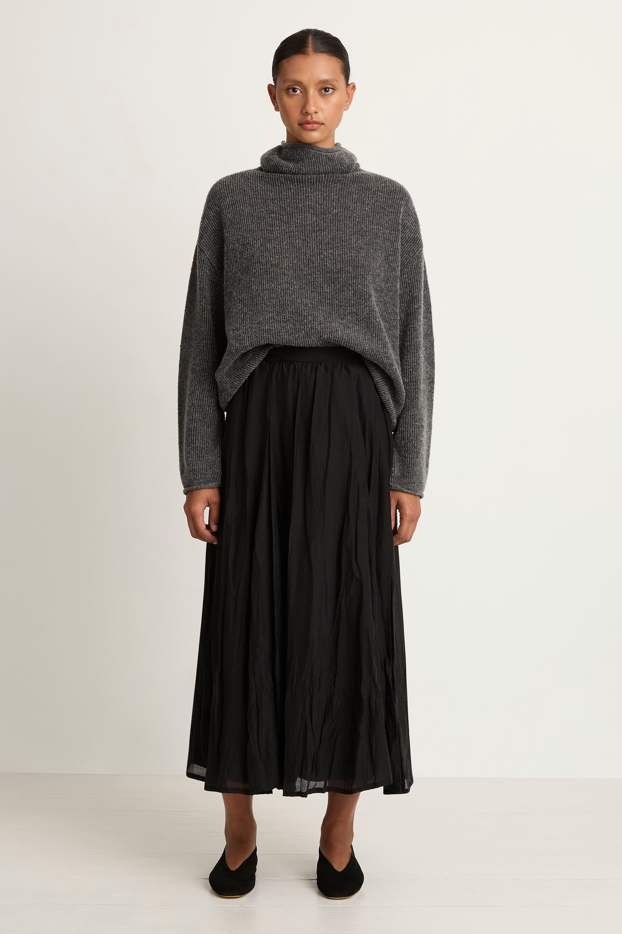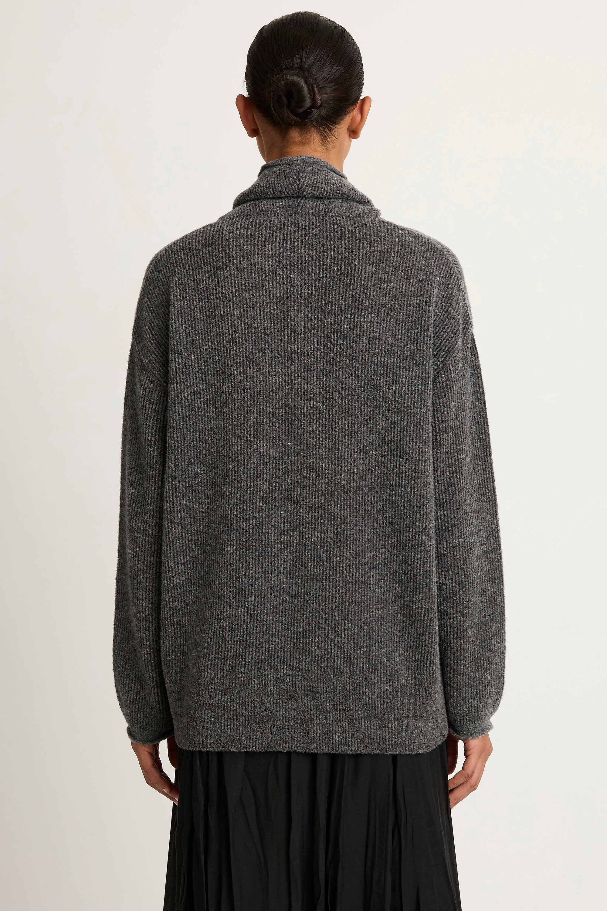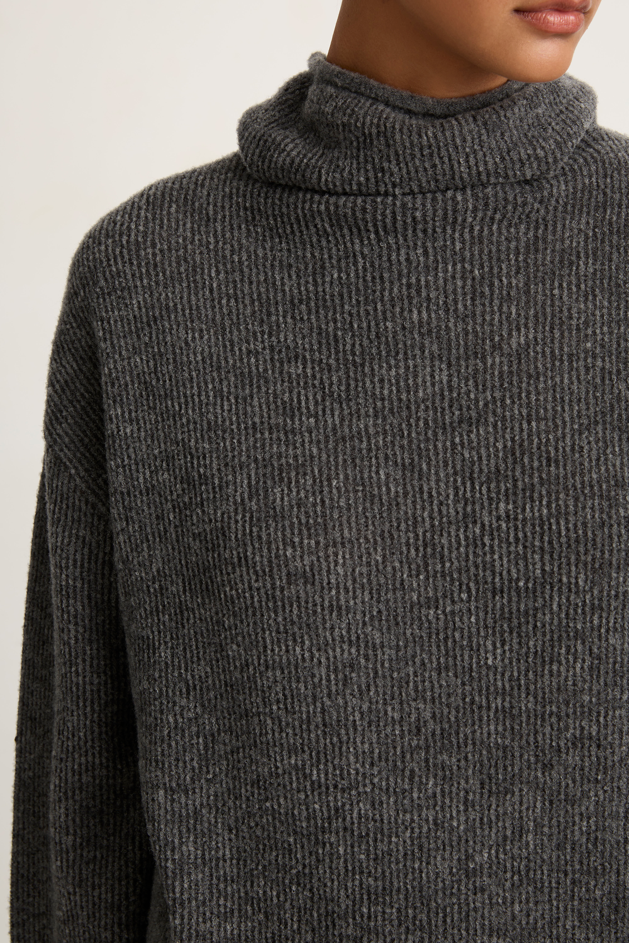 Fine Bouclé Turtleneck Knit Pullover - Heather Grey
