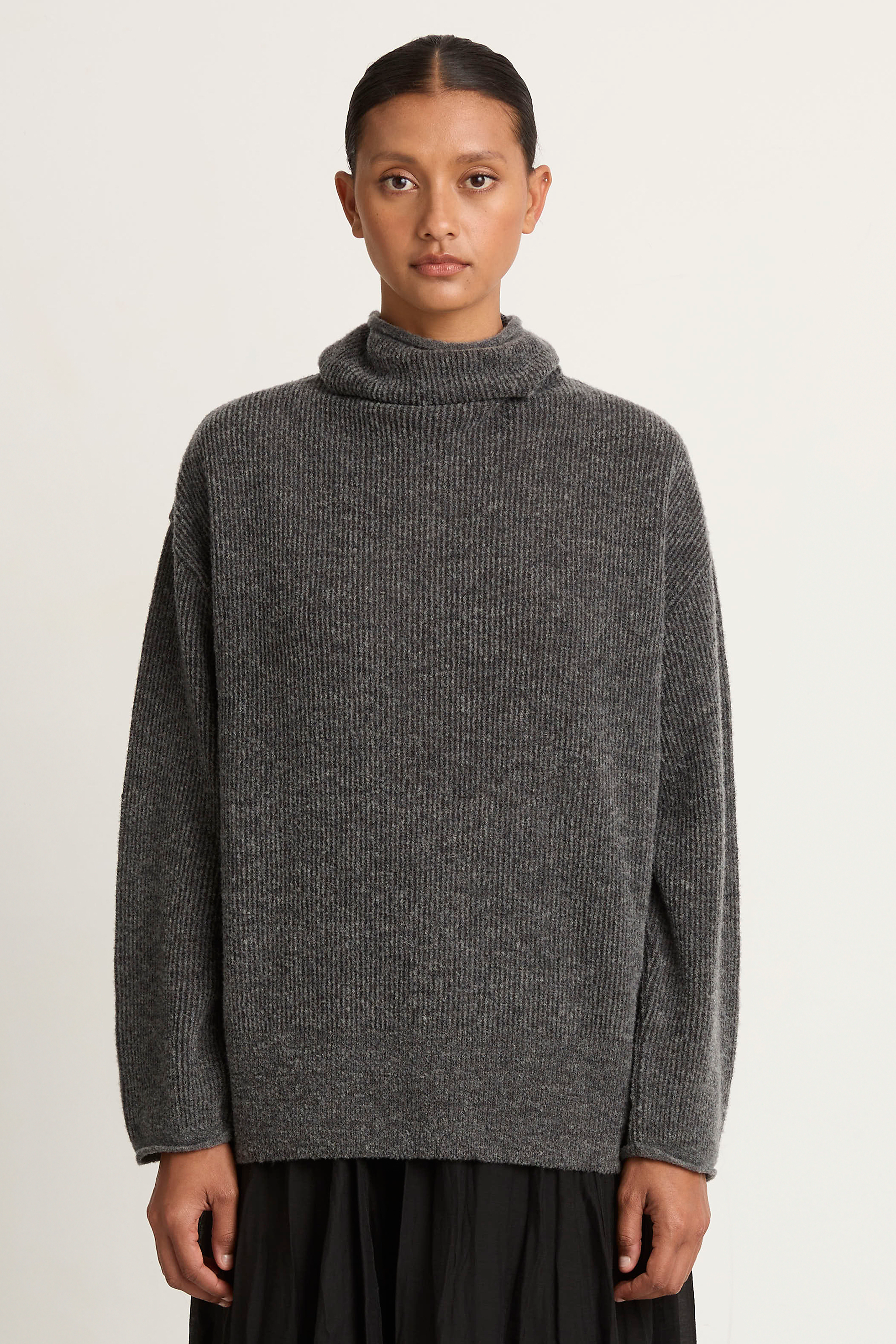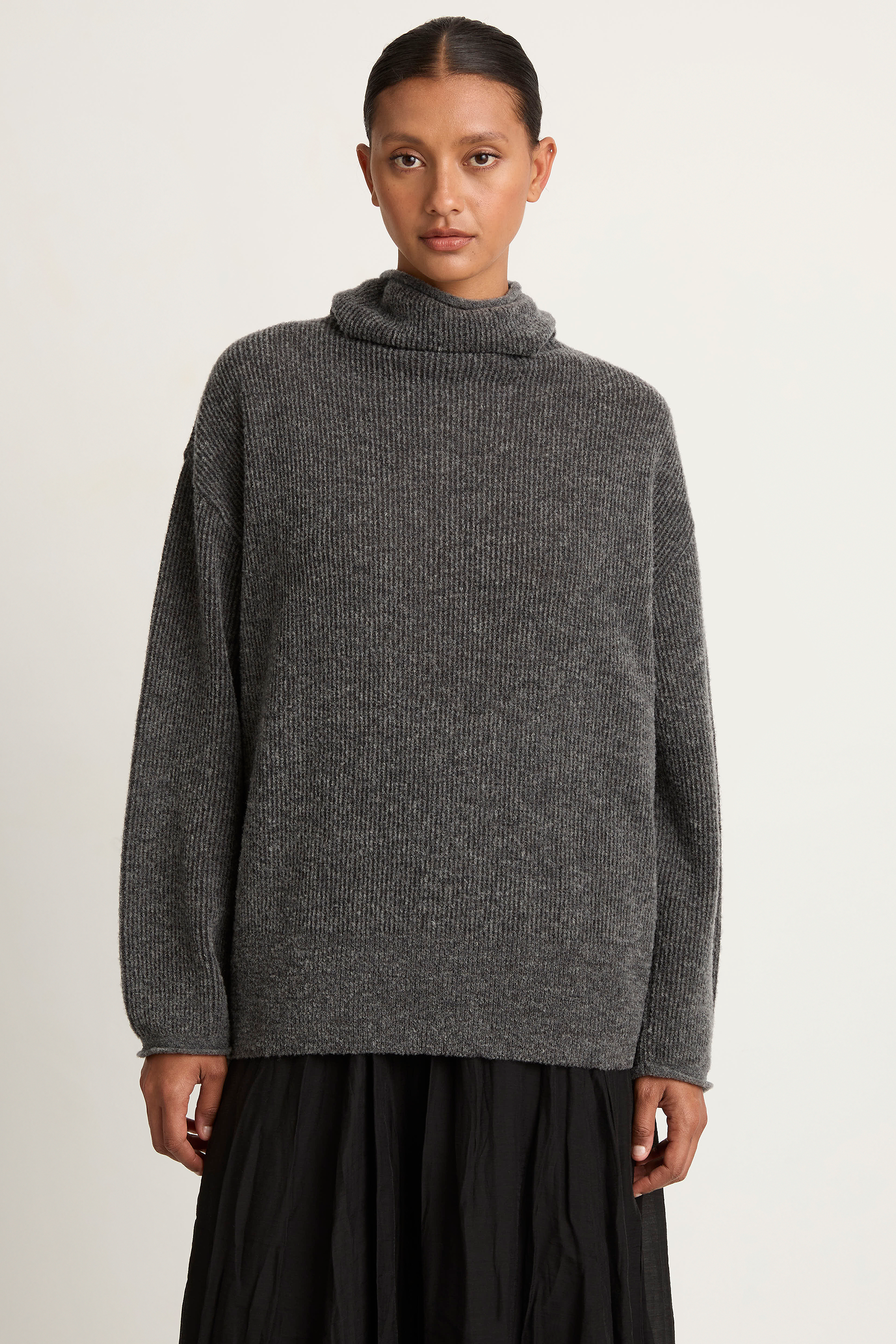 Pas De Calais Fine Bouclé Turtleneck Knit Pullover - Heather Grey