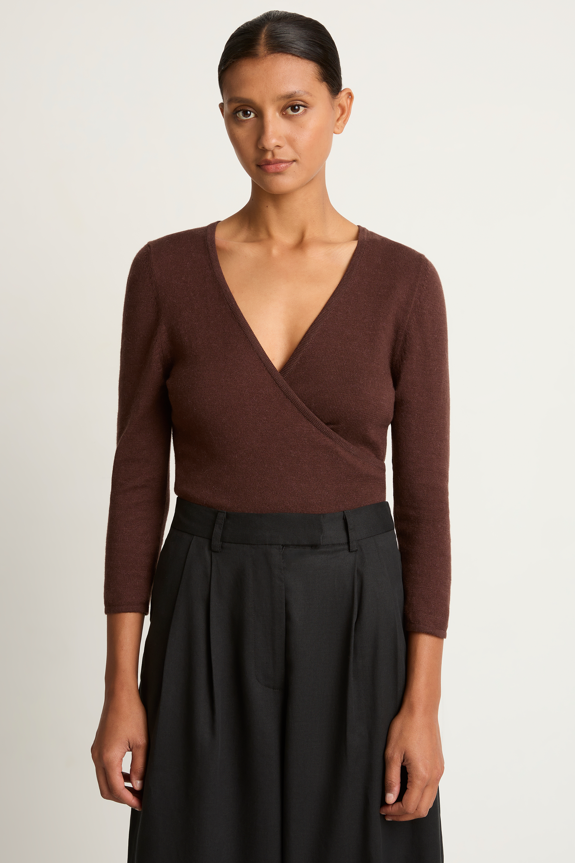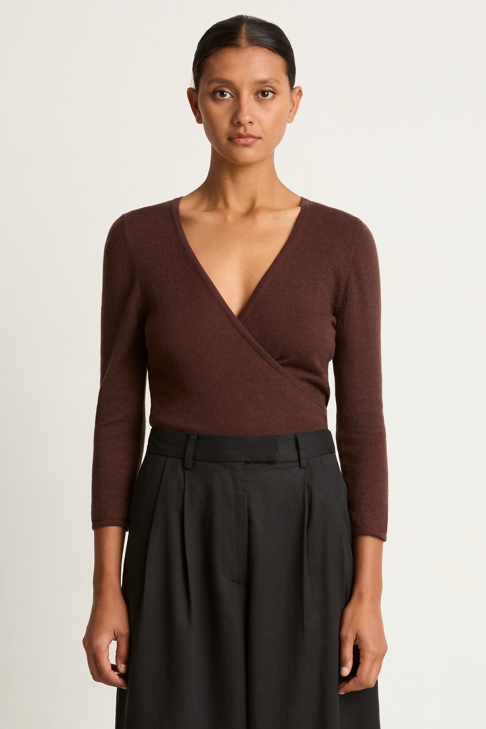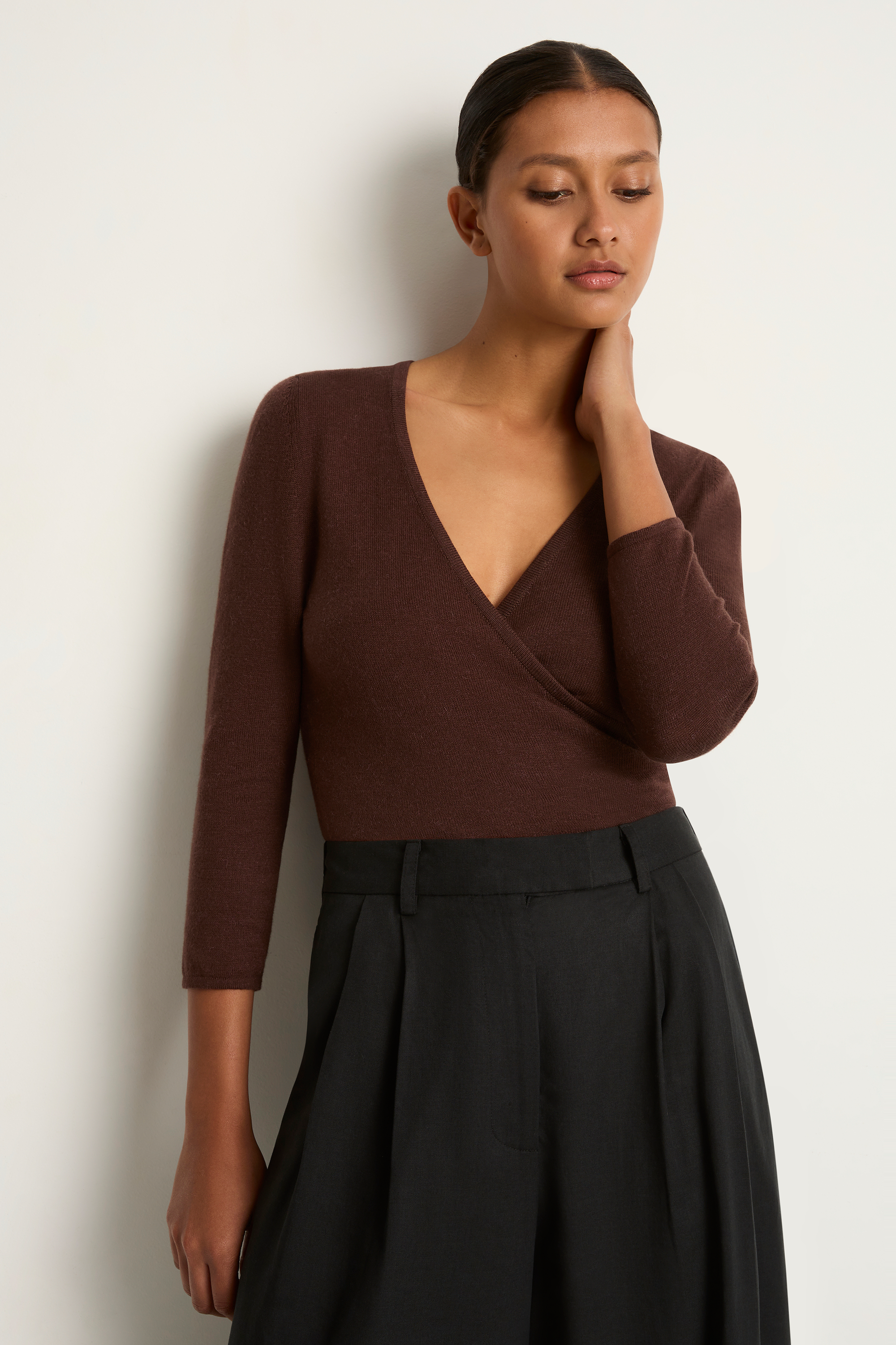 Introducing the Shaina Mote wrap top - a versatile best-seller that pairs effortlessly with high-waisted bottoms. Its lightweight cotton viscose knit makes it perfect for year-round wear.