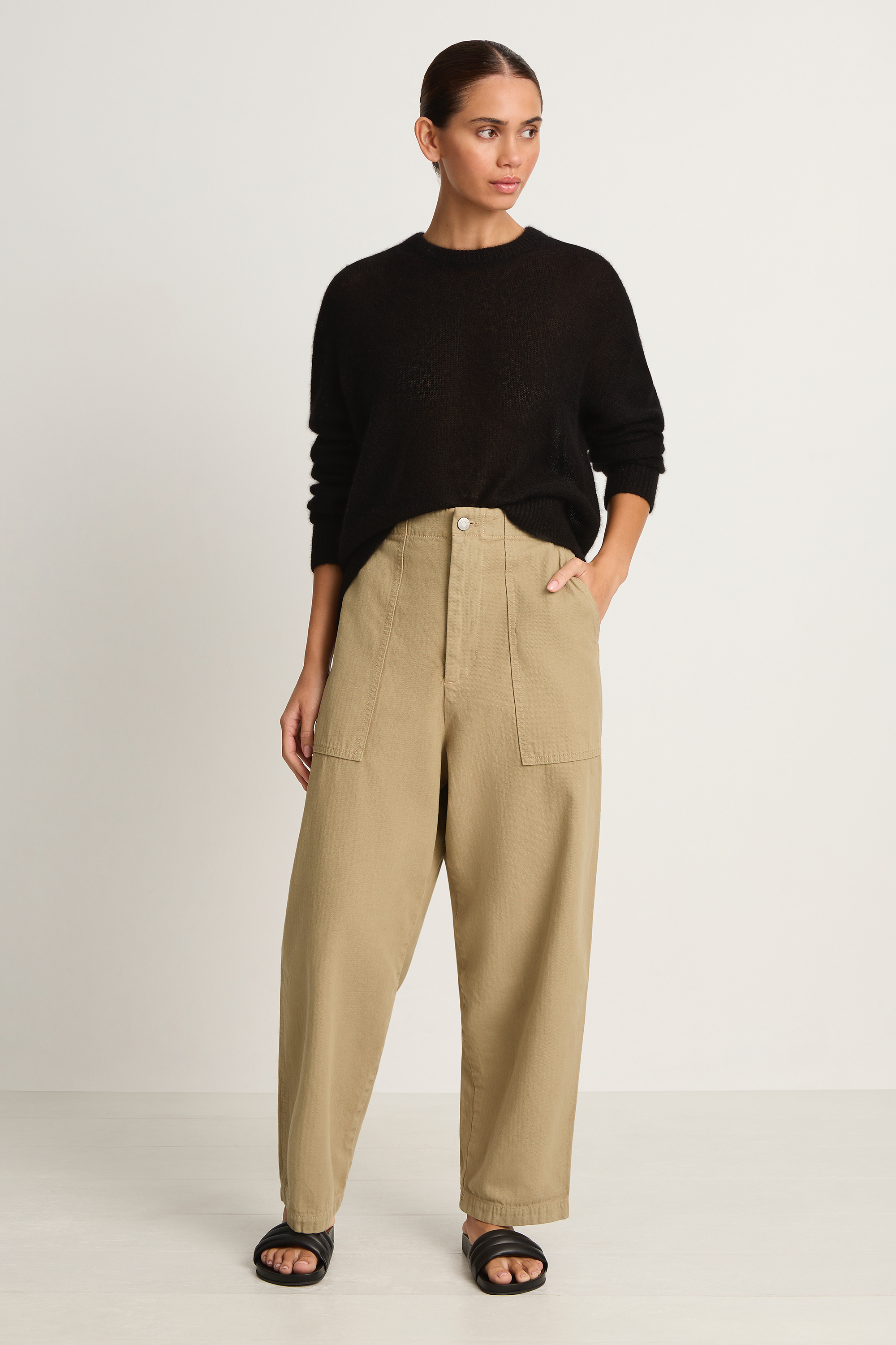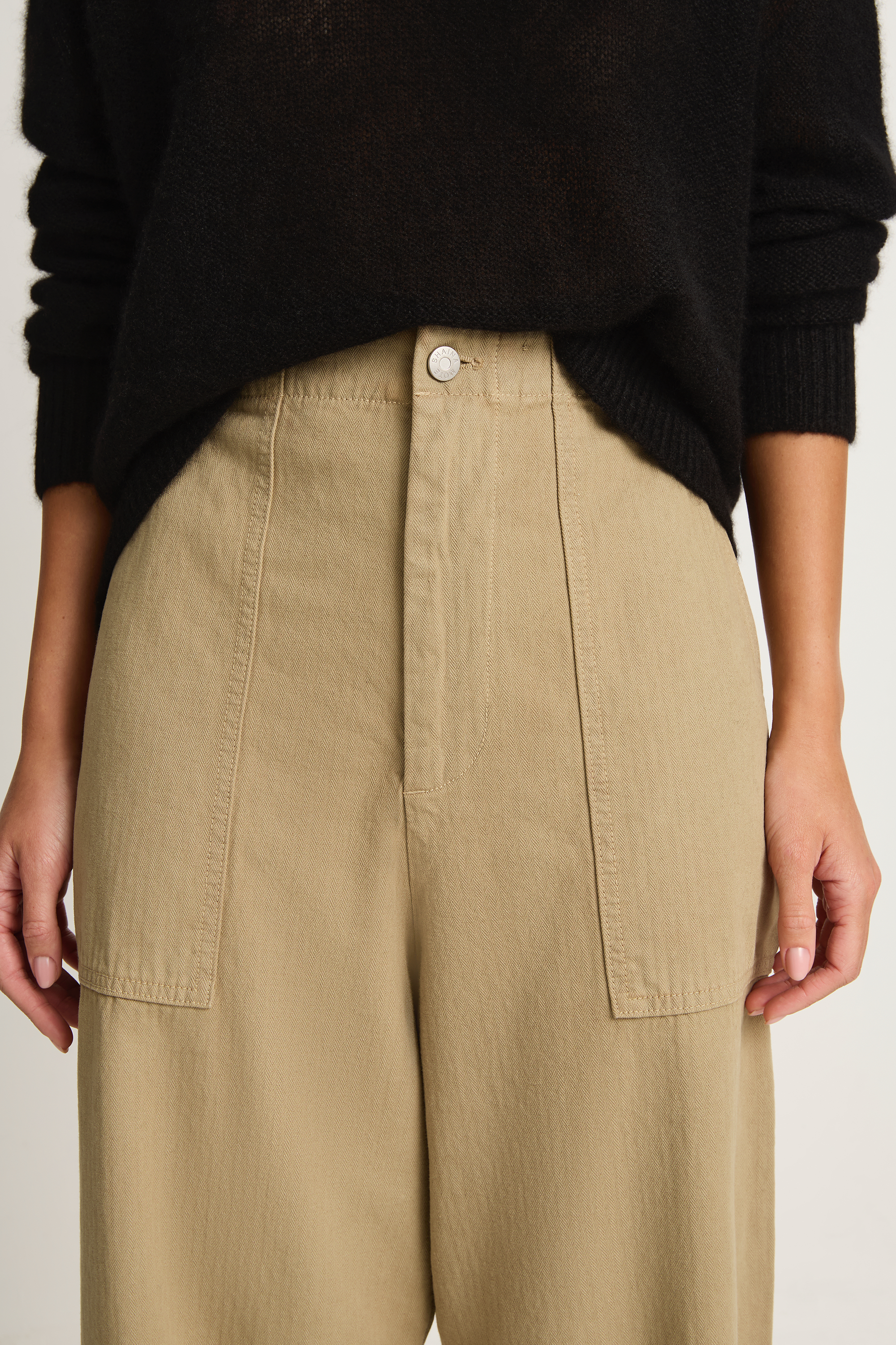 A timeless everyday staple, the Shaina Mote Painter Pant draws inspiration from classic French and American chore trousers. Crafted in the USA from durable 100% cotton herringbone twill, this pant features a relaxed rise, subtly cropped straight leg, and an easy fit. Functional details include oversized front patch pockets, back patch pockets, and an elasticated waistband at the back for comfort and ease. Designed for daily wear, this elevated workwear piece blends practicality with effortless style.