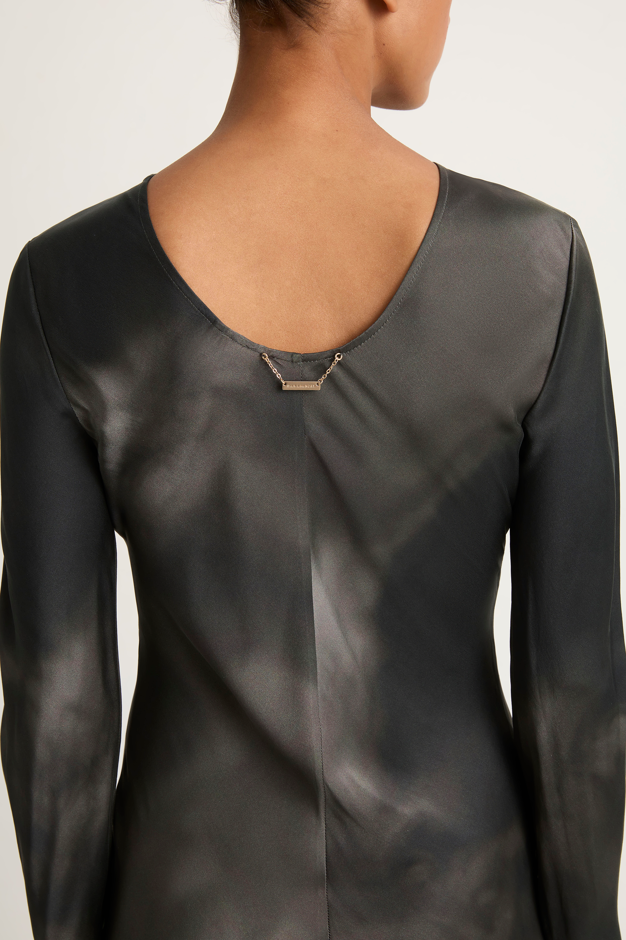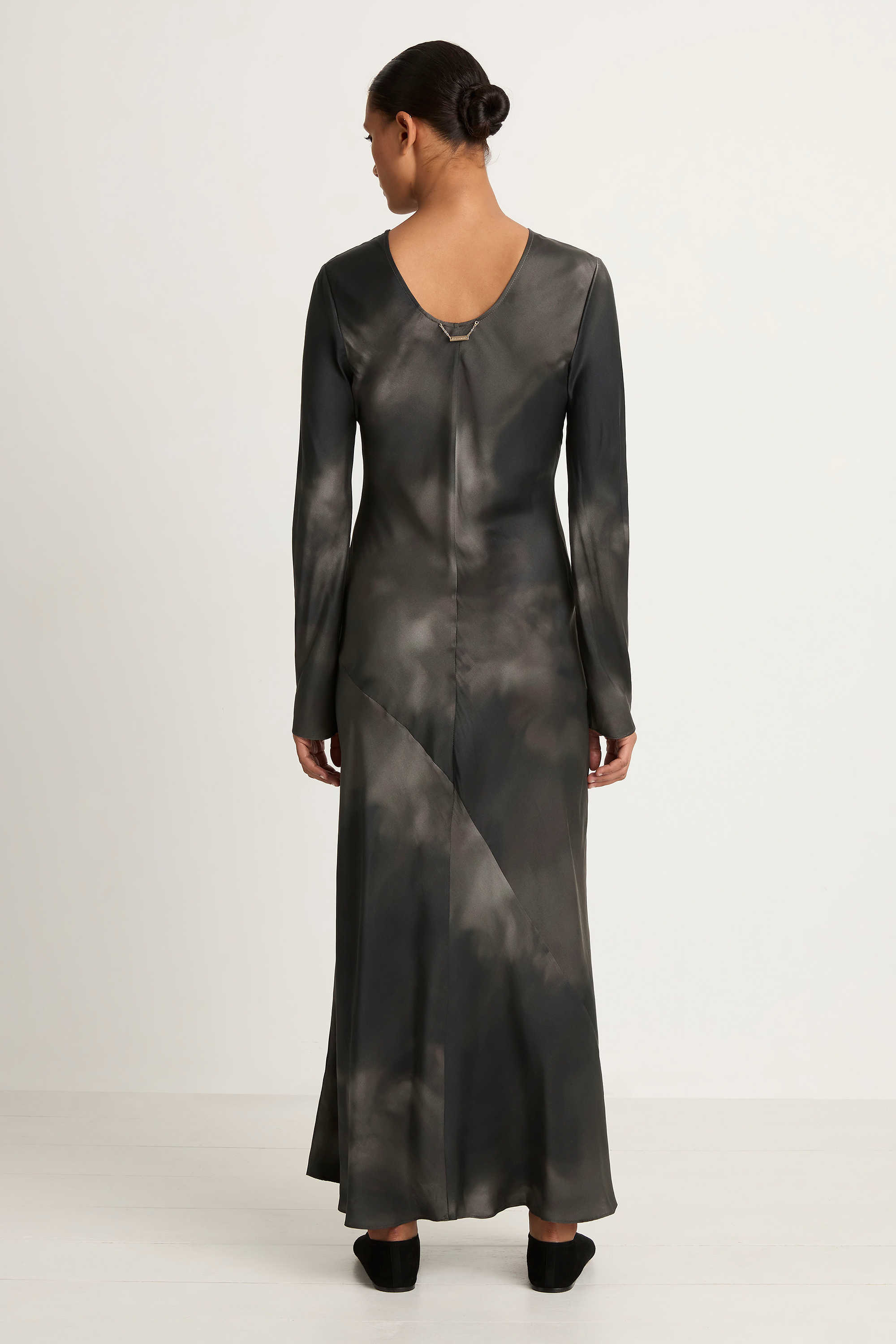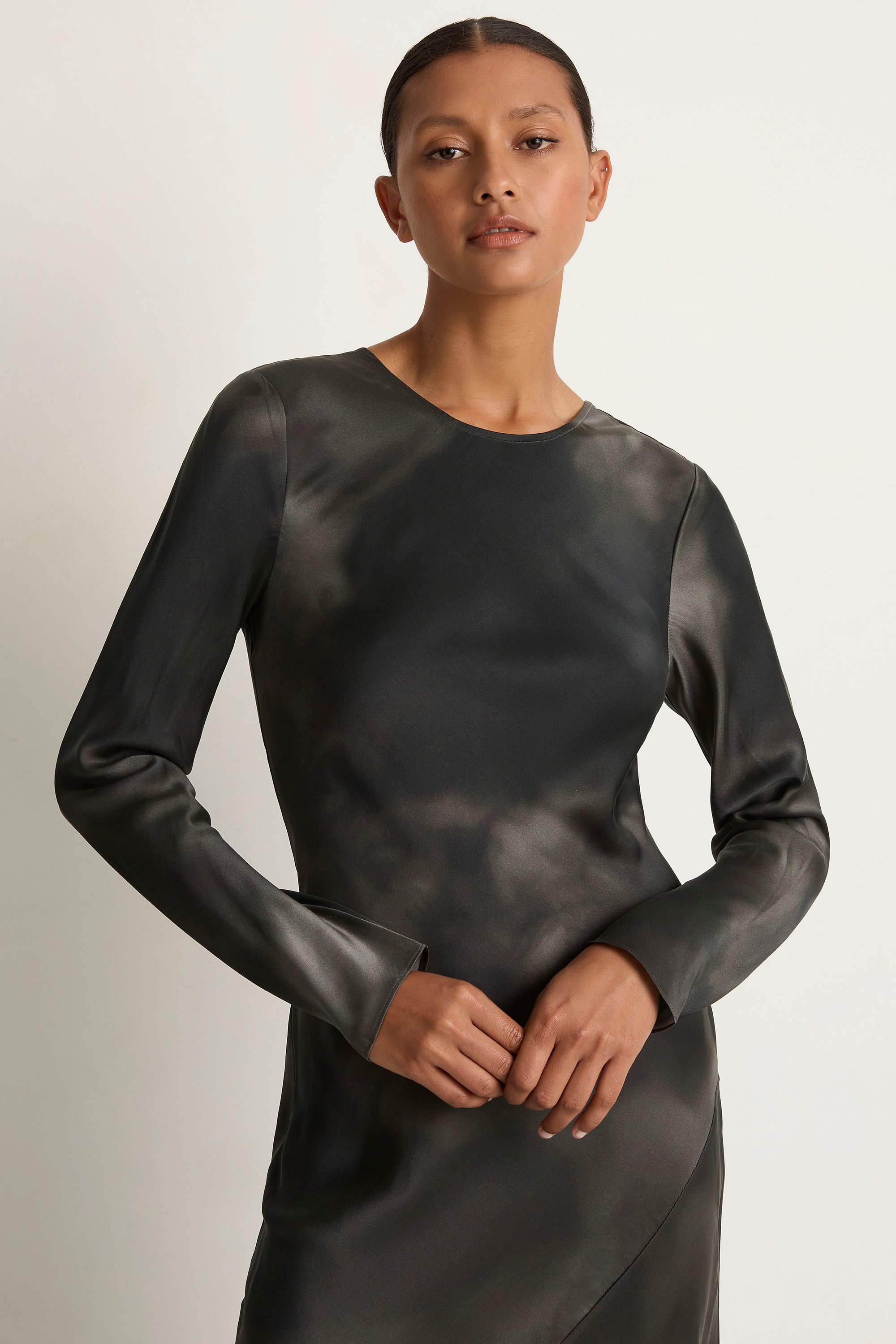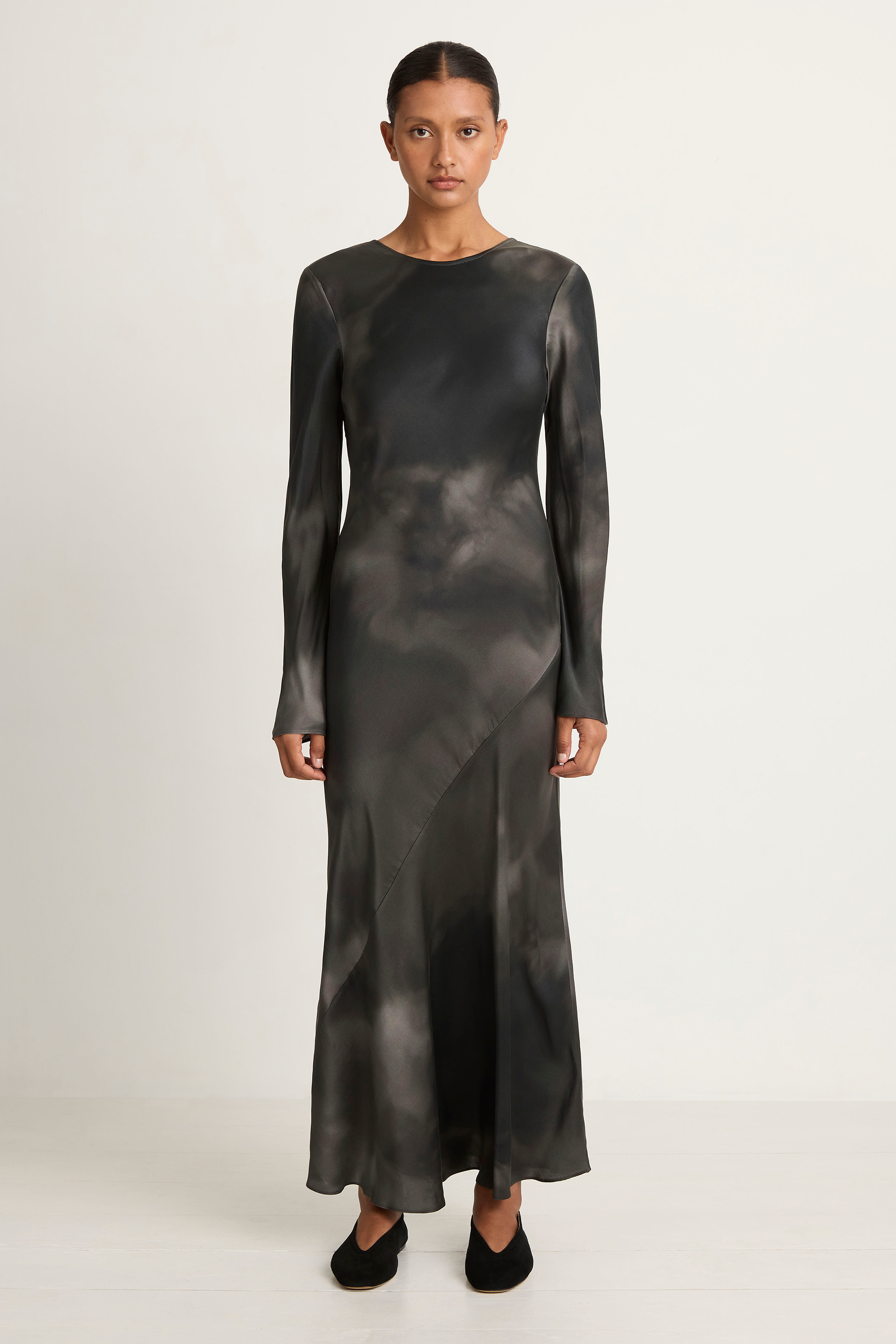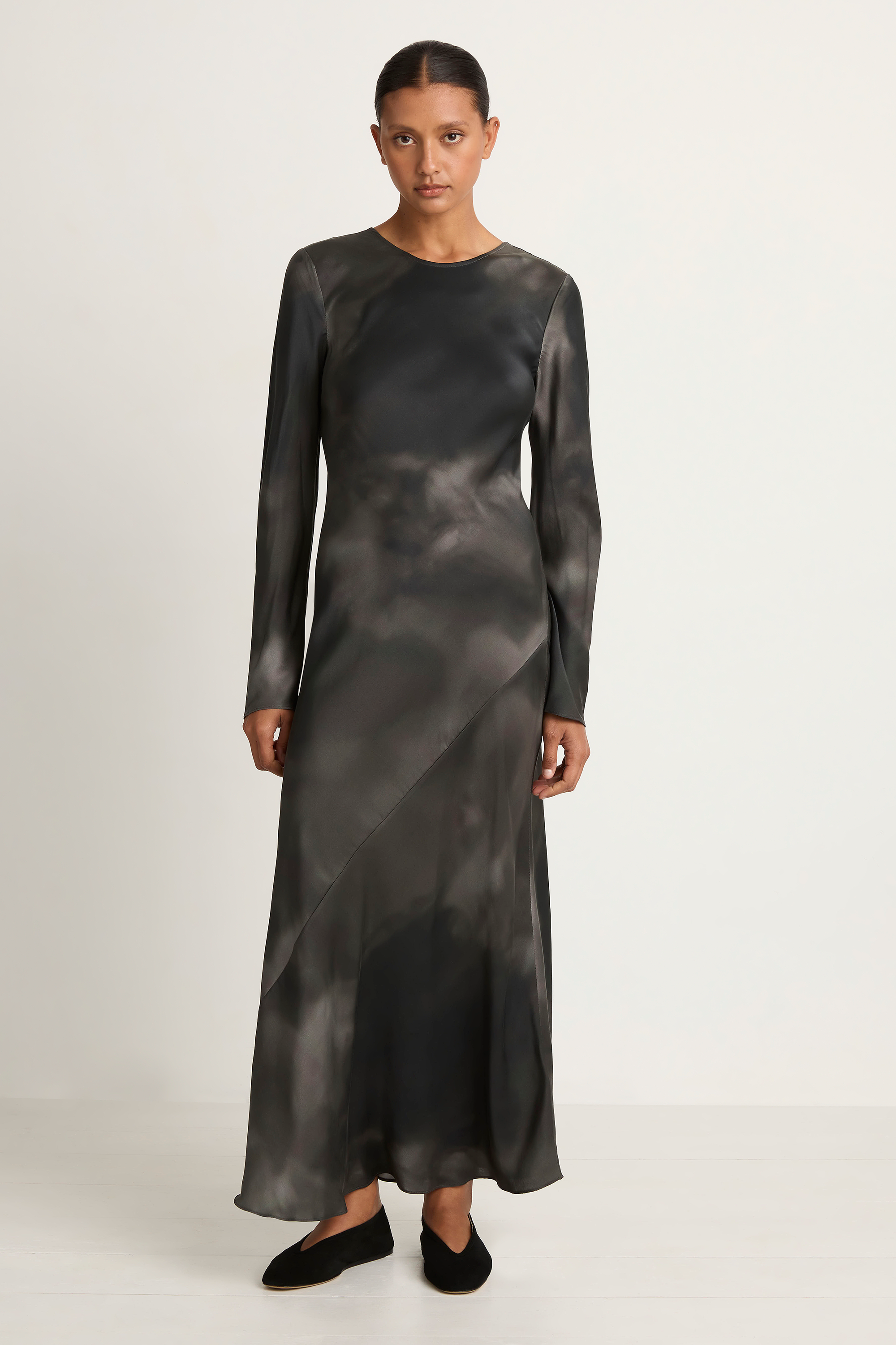 Silk Laundry Full Sleeve Bias Dress - Smoke