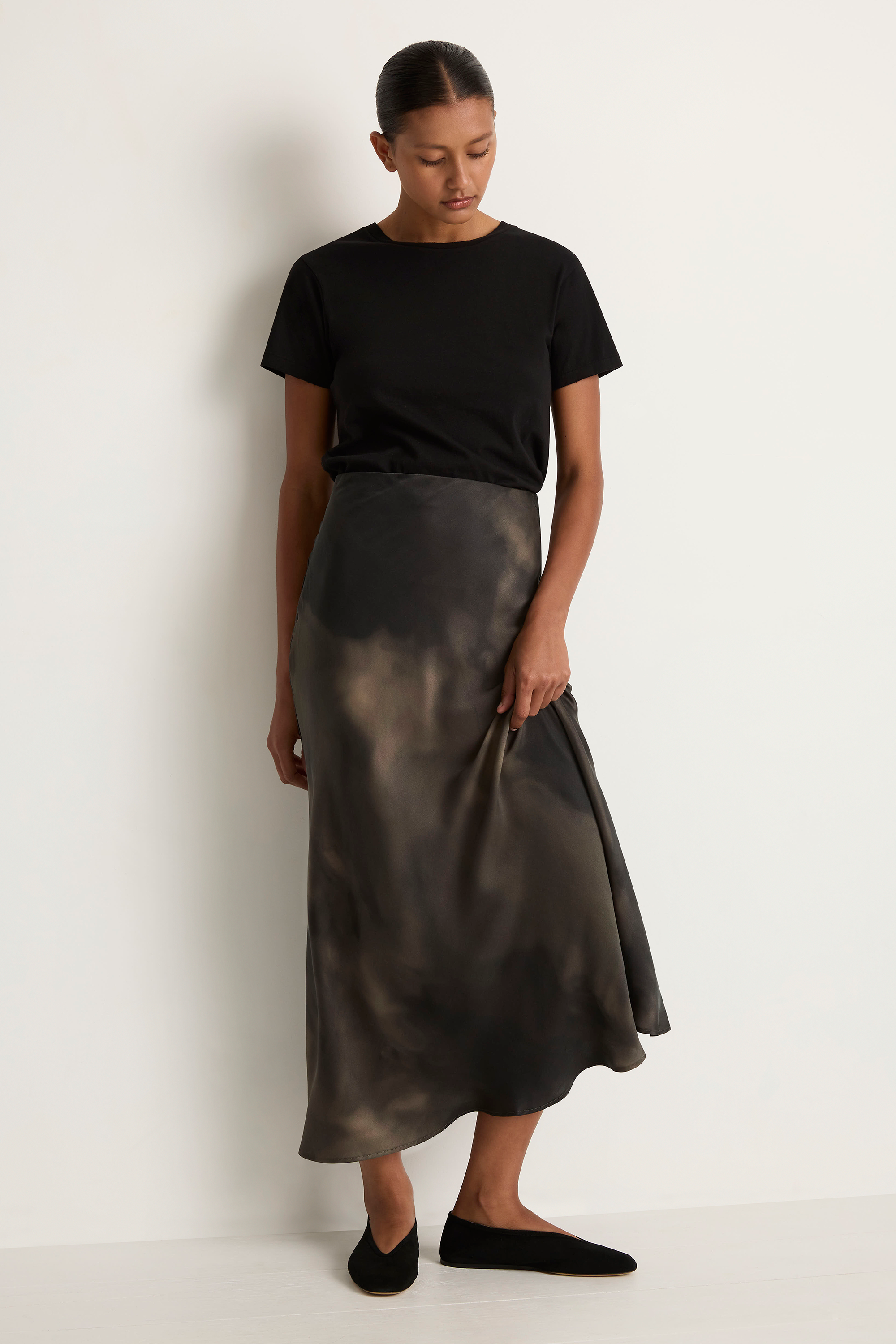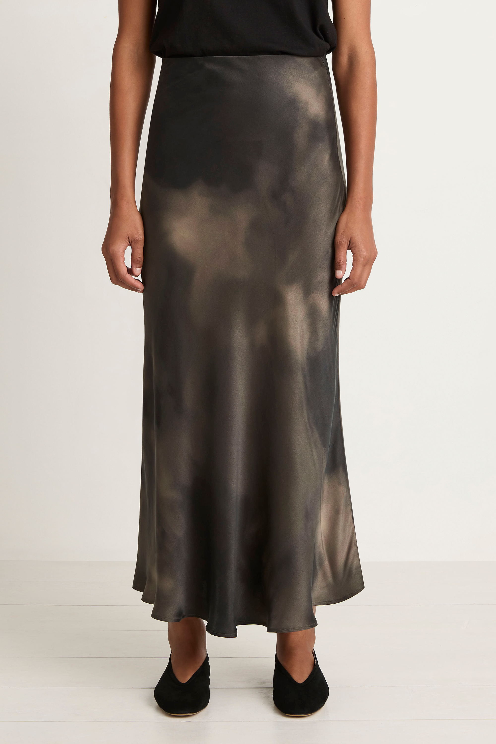 Silk Laundry Long Bias Cut Skirt - Smoke