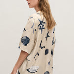 Silk Laundry Short Sleeve Boyfriend Shirt - Seashells