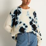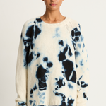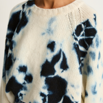 Long sleeve crewneck cashmere sweater crafted and hand-dyed in Japan using traditional Arimatsu Narumi Shibori techniques.