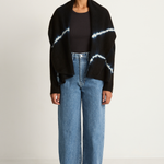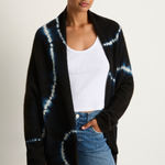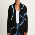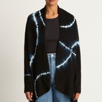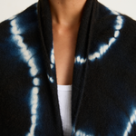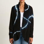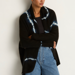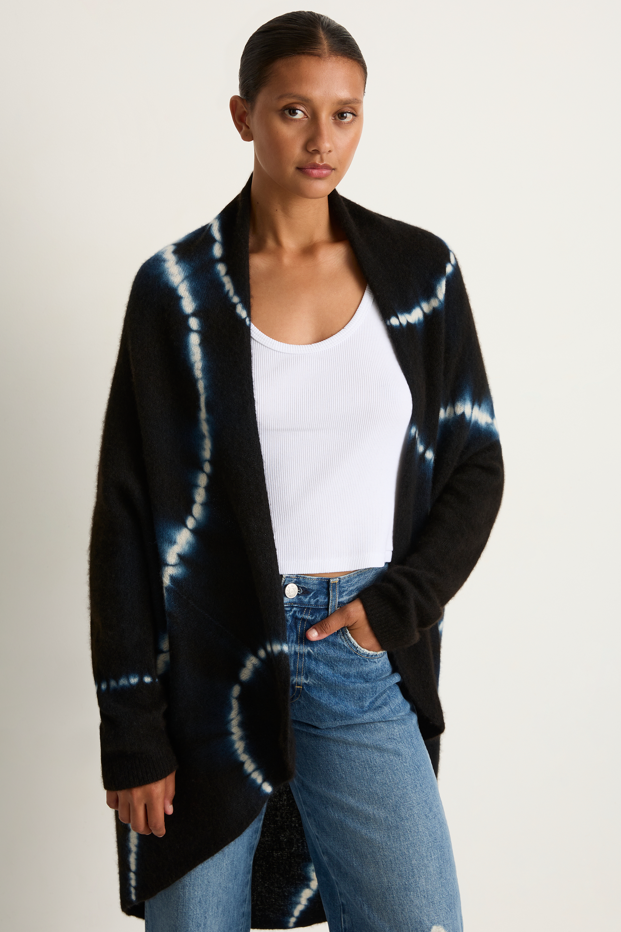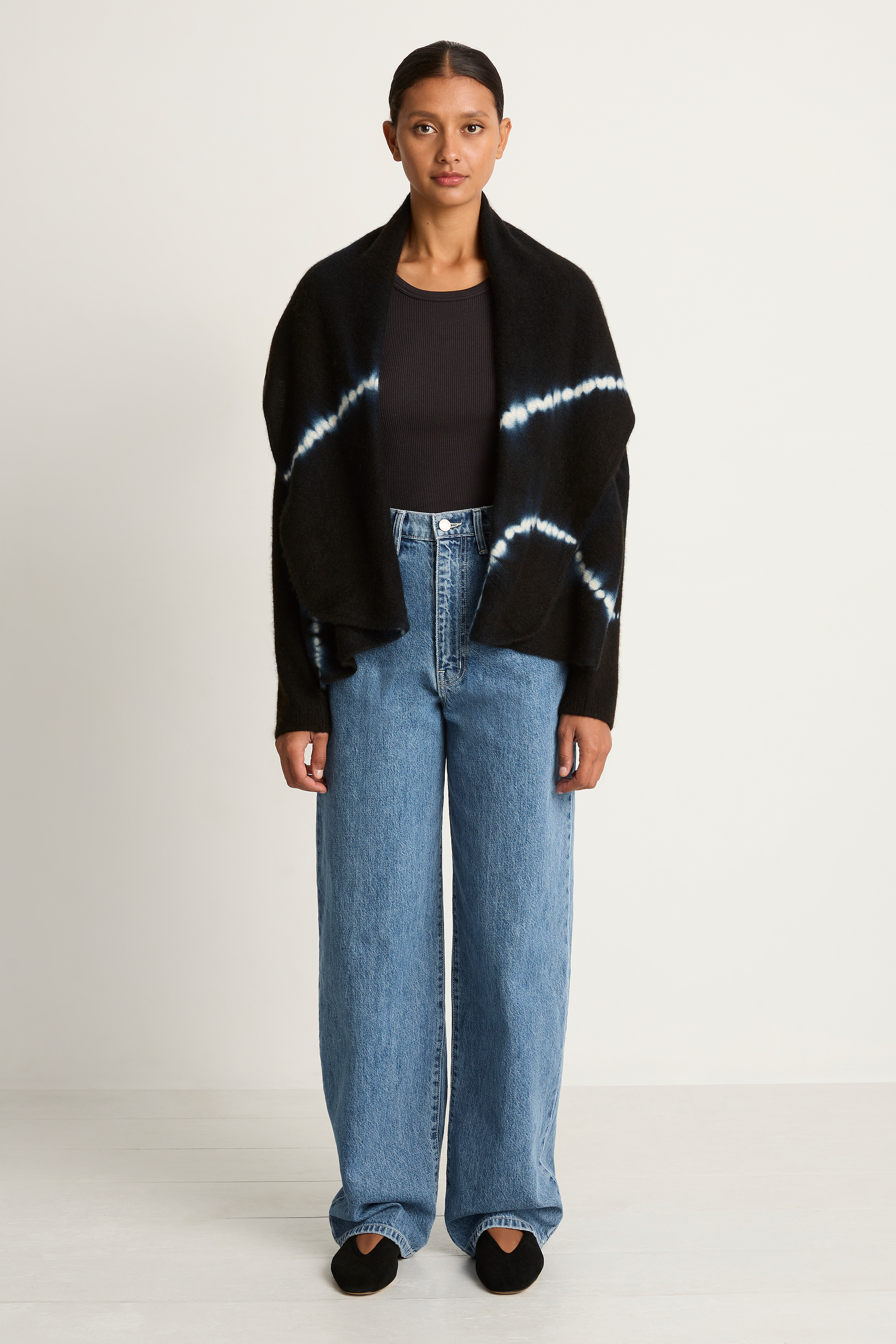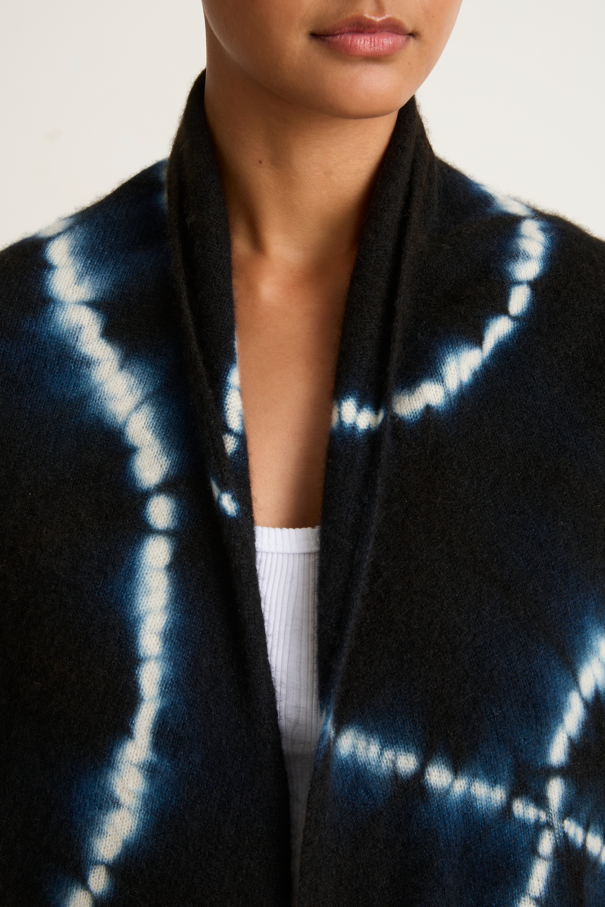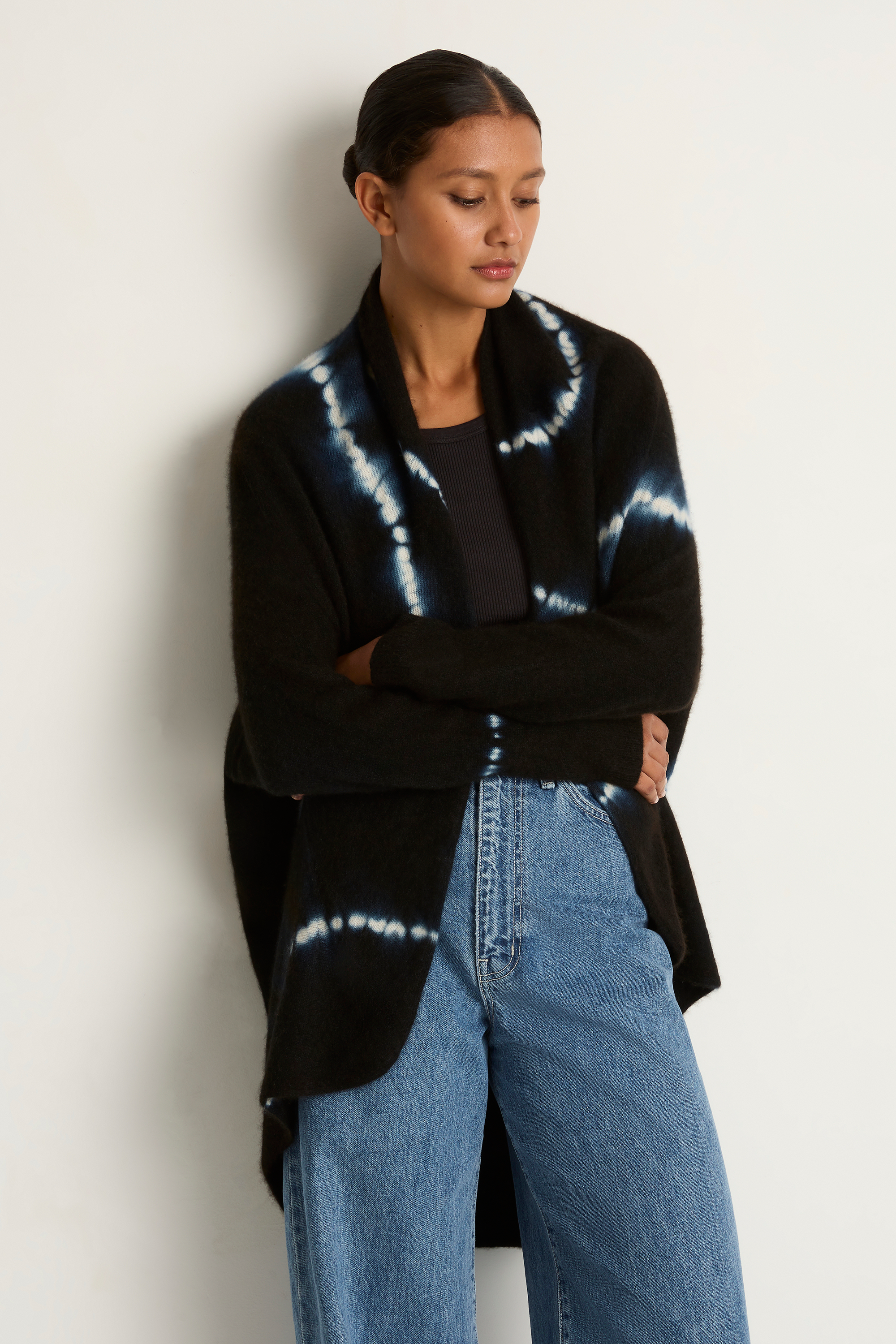 Oversized long sleeve cashmere cardigan crafted and hand-dyed in Japan using traditional Arimatsu Narumi Shibori techniques. Wear it long or short by flipping upside down.