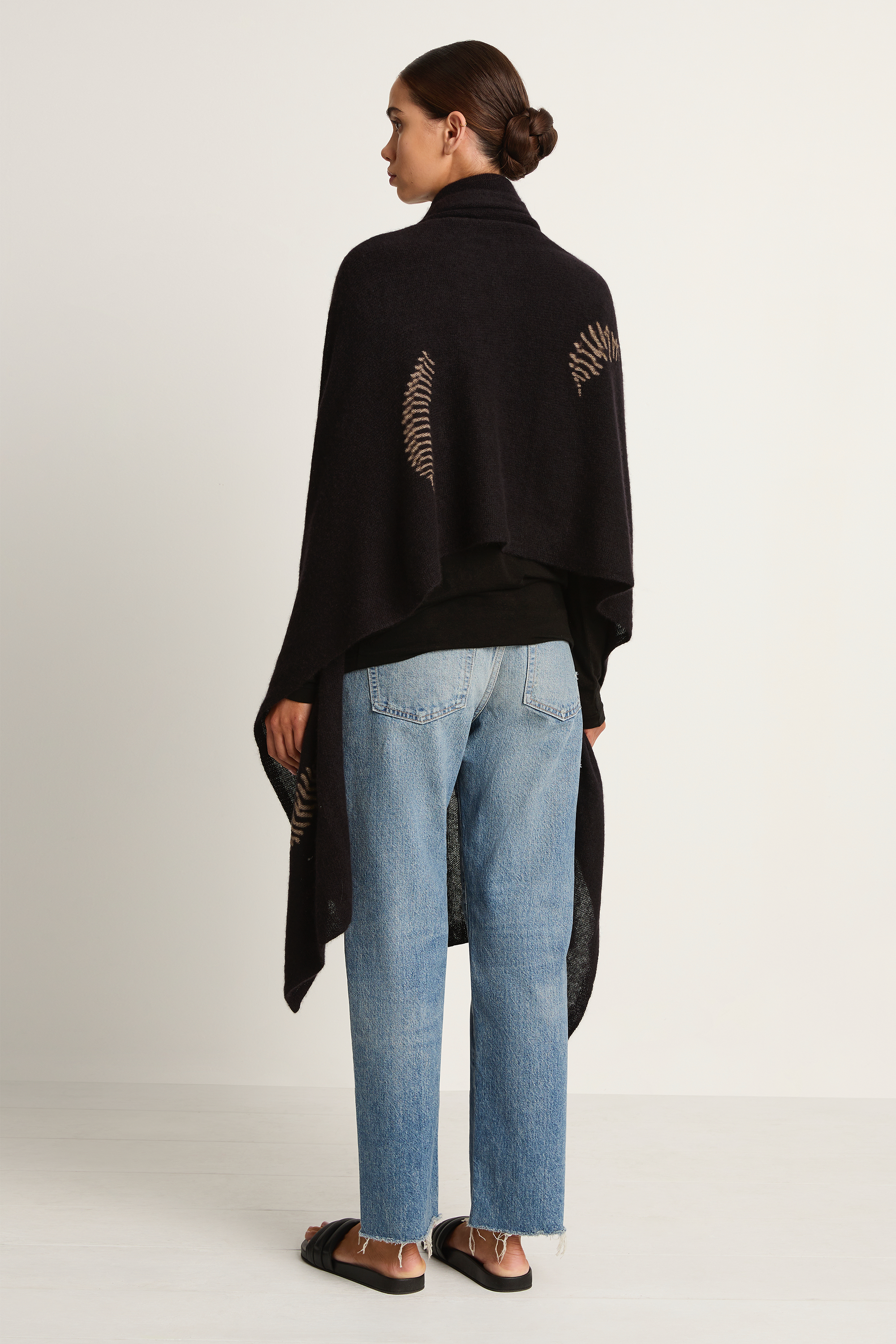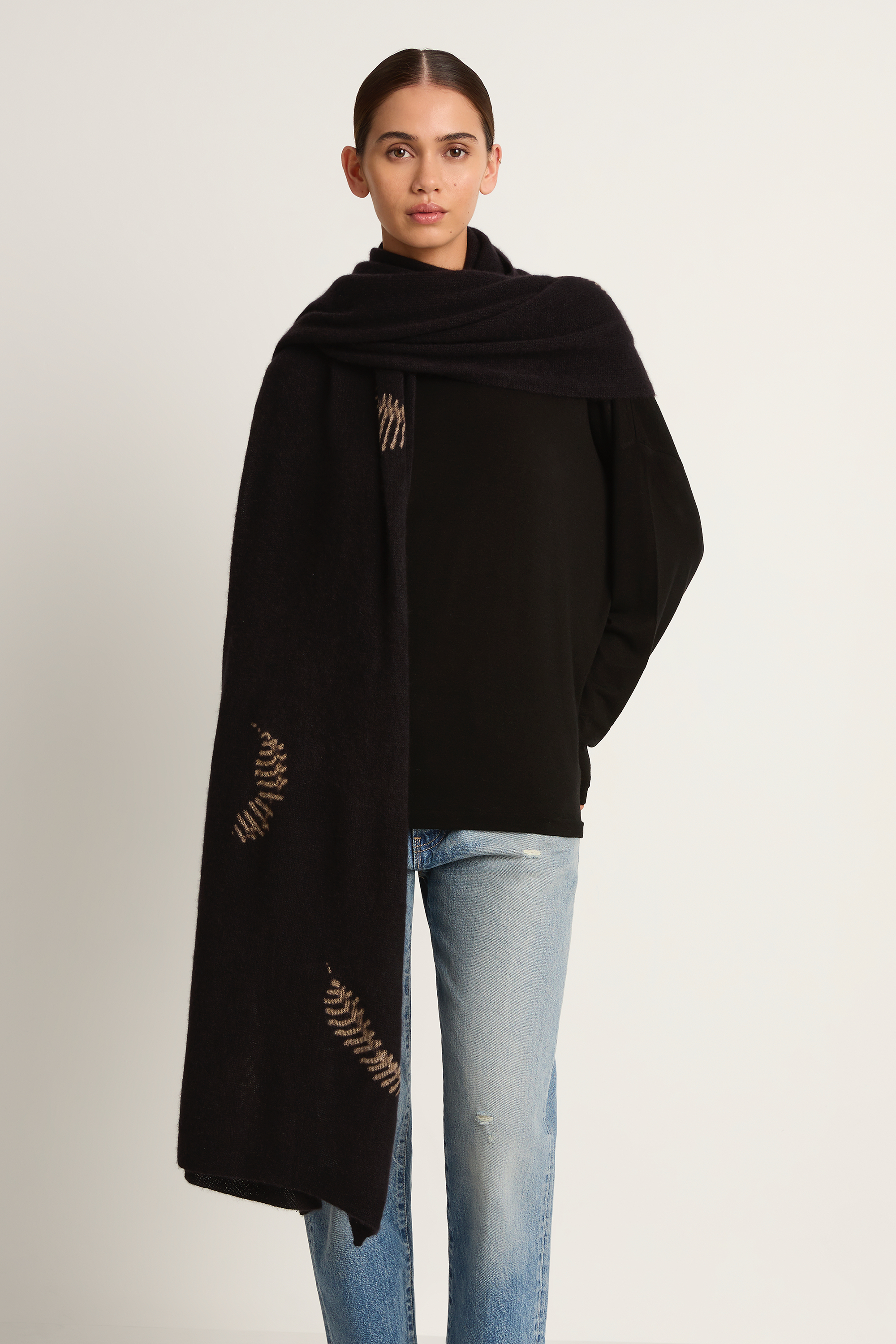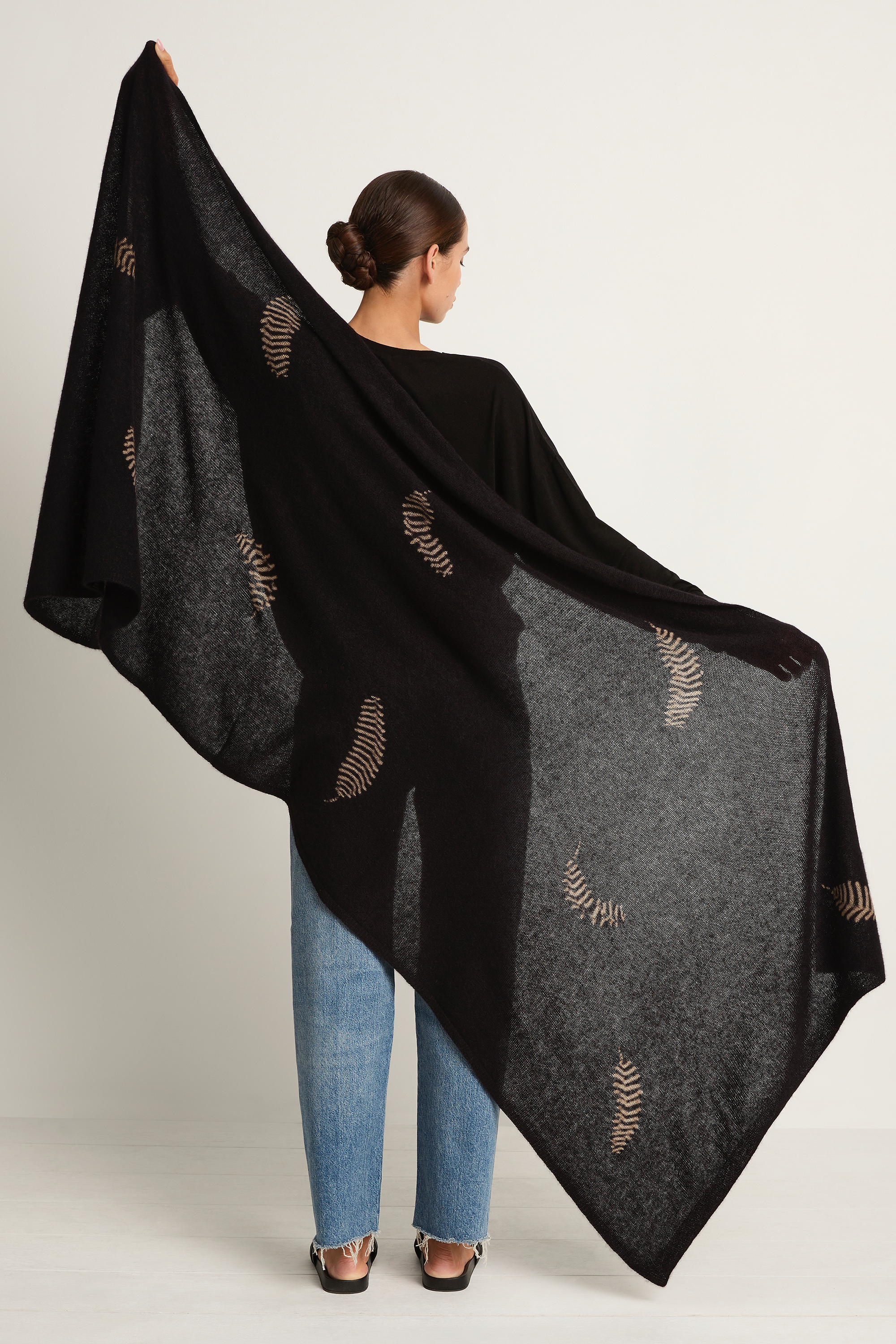 Cashmere Shawl - Makinui Shibori Feather Black / Light Coffee