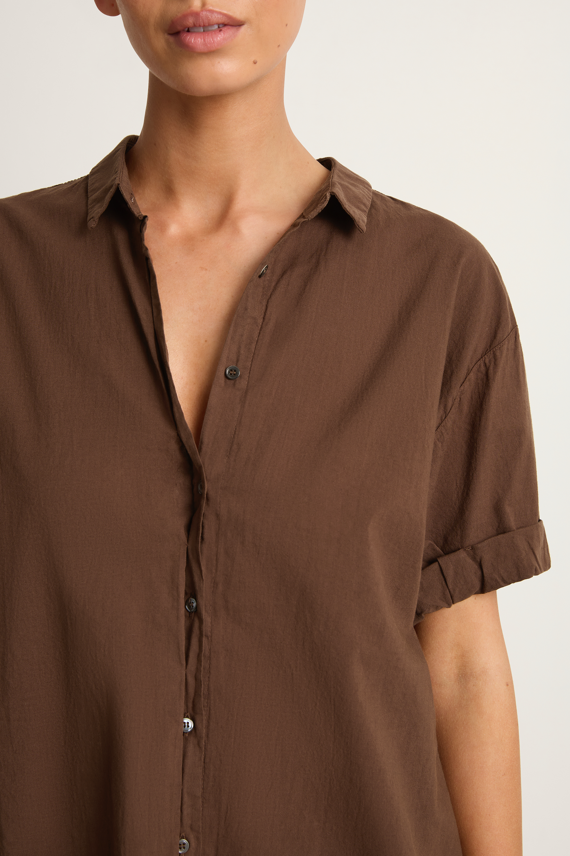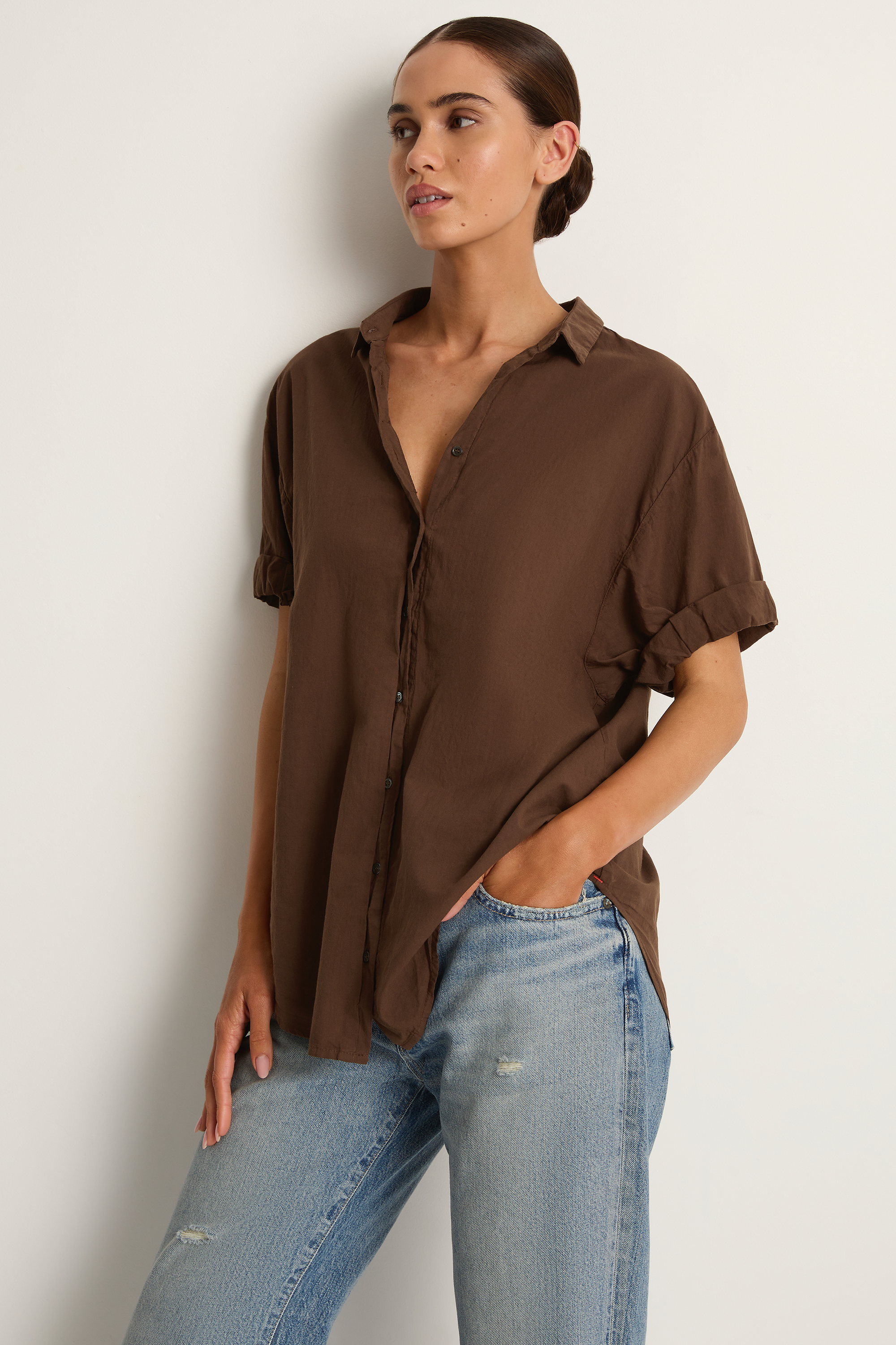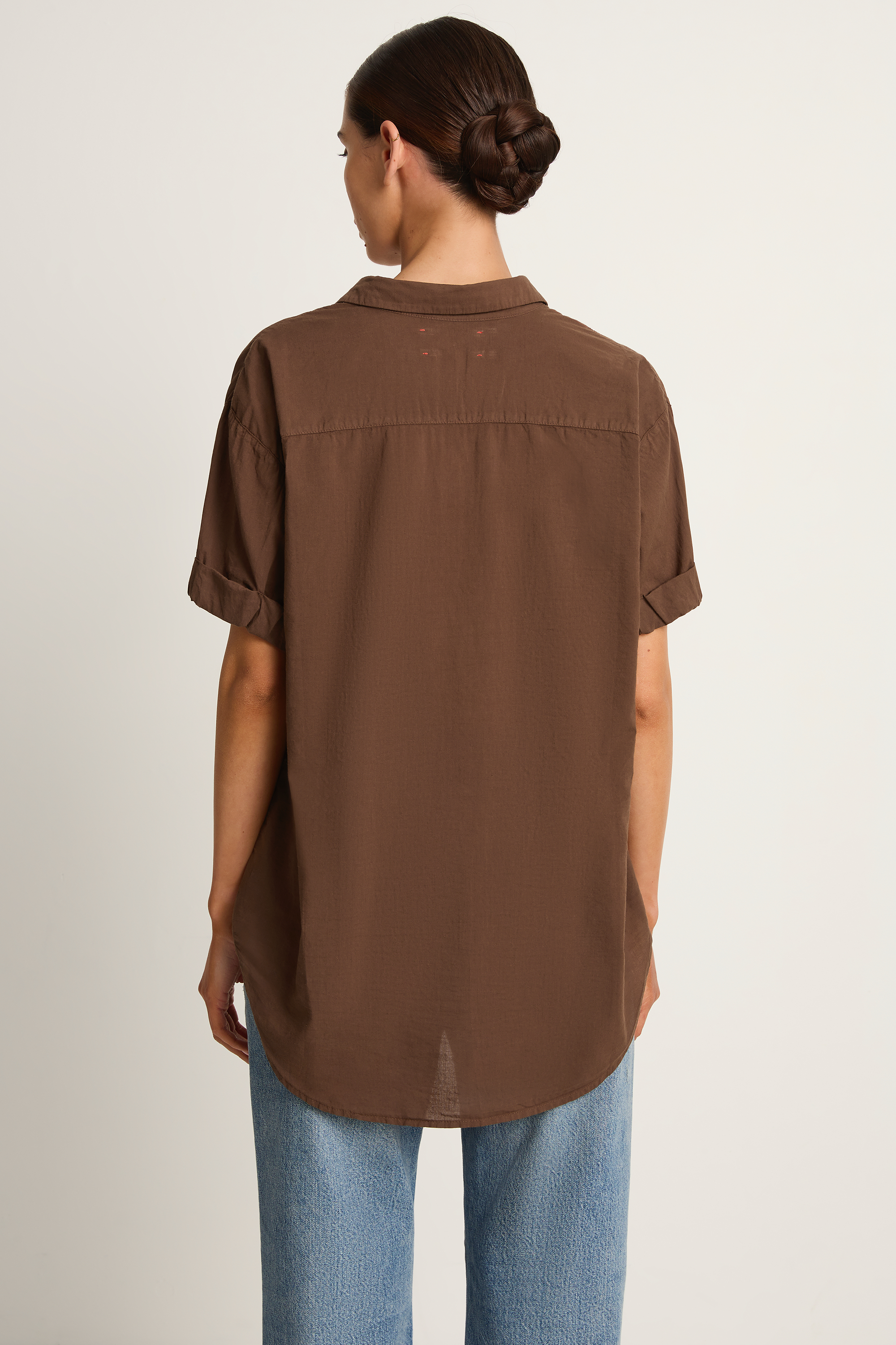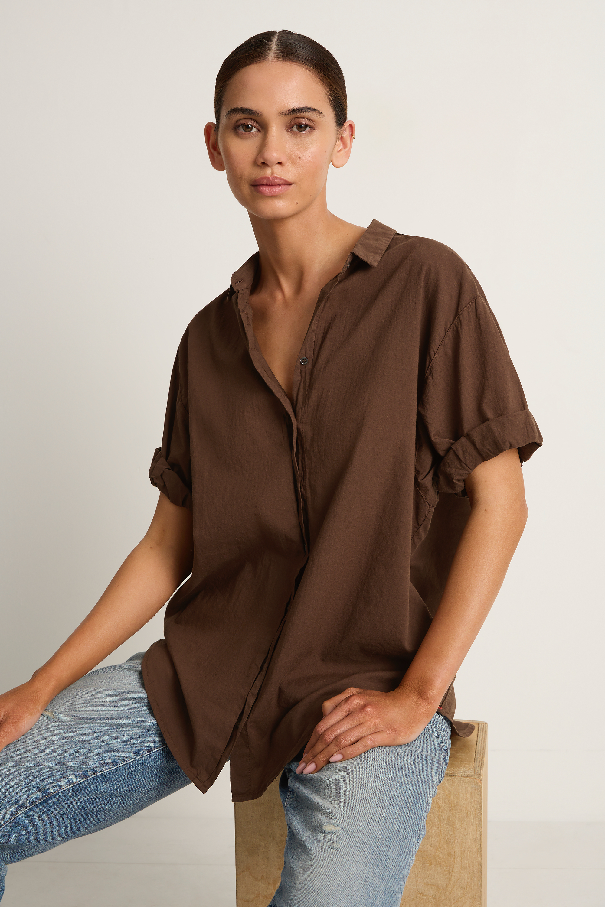 An elevated essential with a borrowed-from-him silhouette. Crafted from crisp 100% cotton poplin, this best-selling shirt features rolled short sleeves, a full button front, and an oversized fit — tailored yet relaxed.